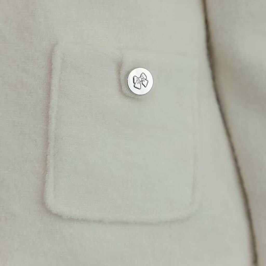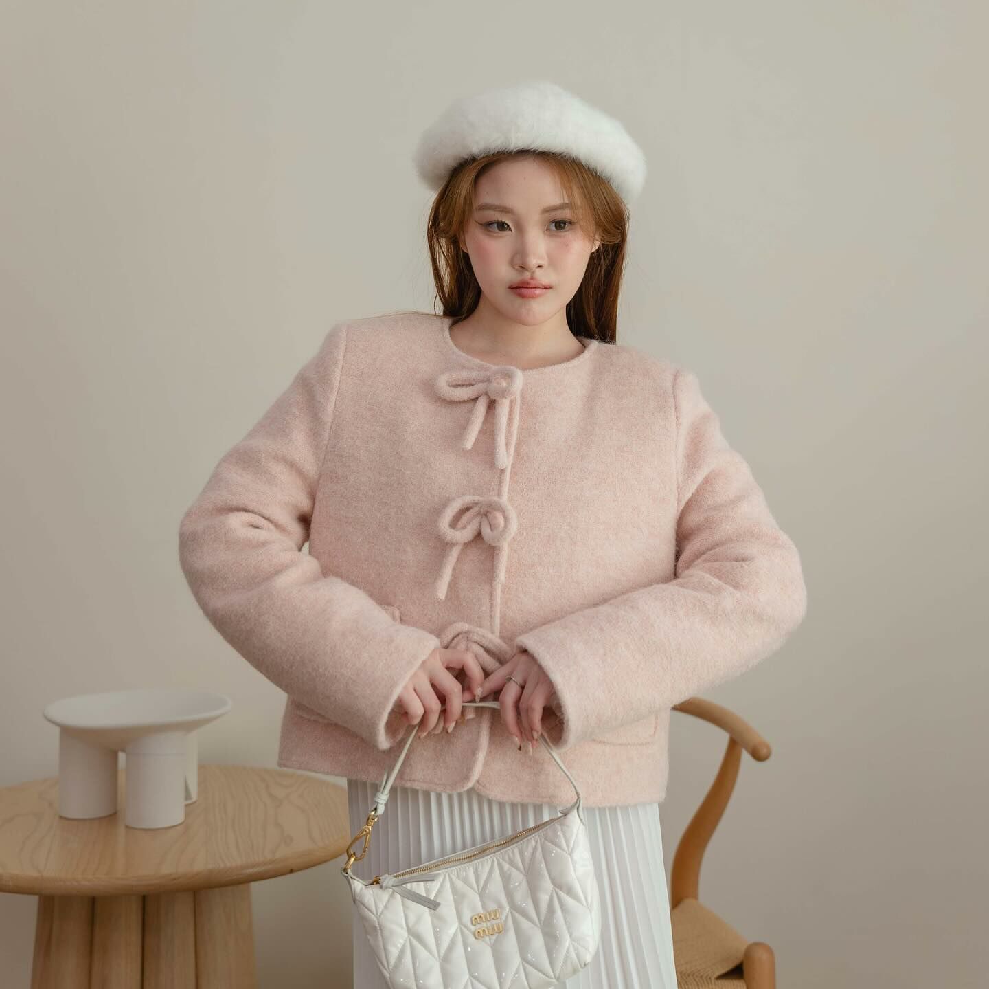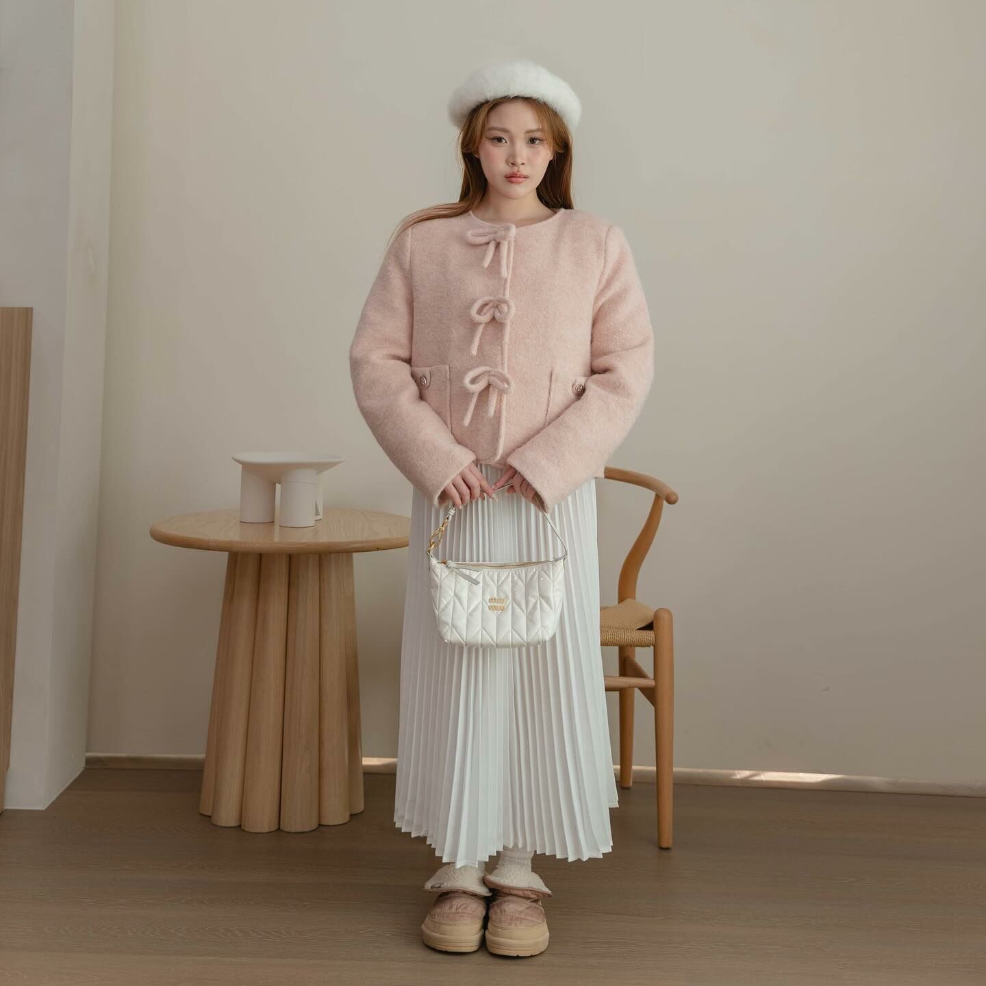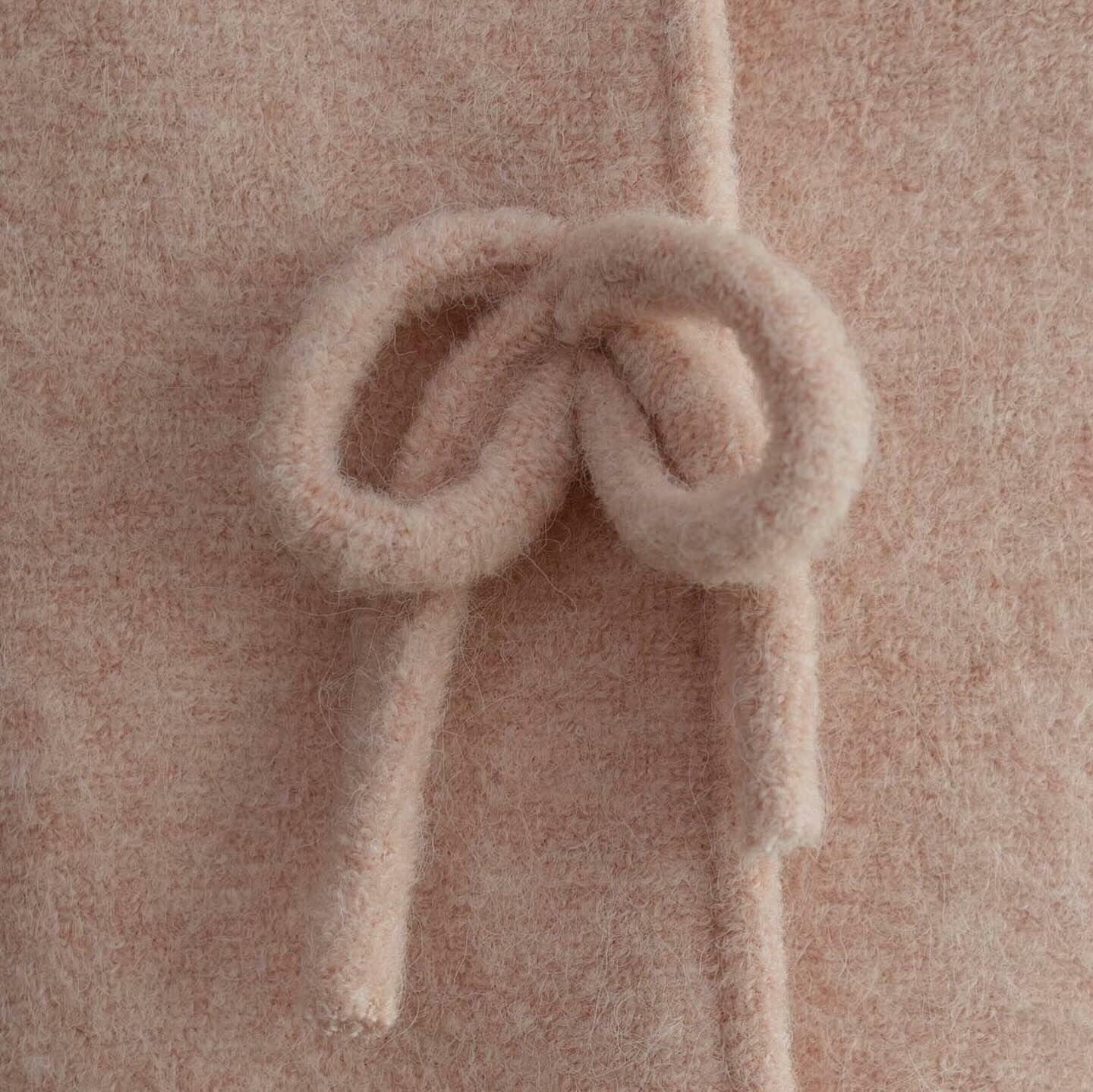 羊毛開襟衫內襯是90%鴨絨,很溫暖。正面有蝴蝶結細節 + 口袋上有蝴蝶結扣。這款非常適合年輕女士。