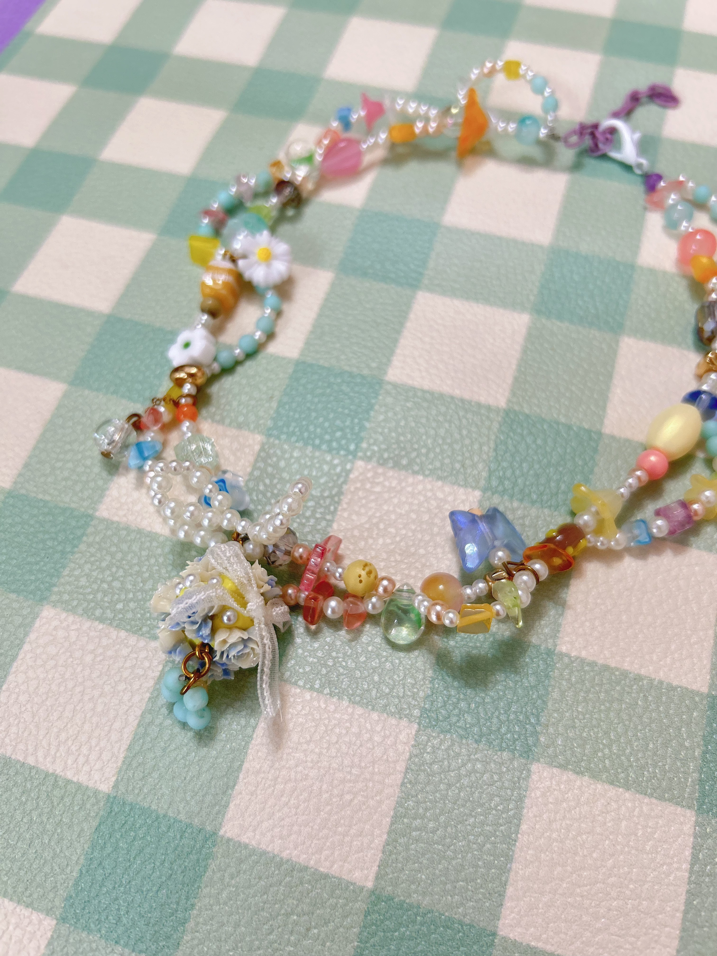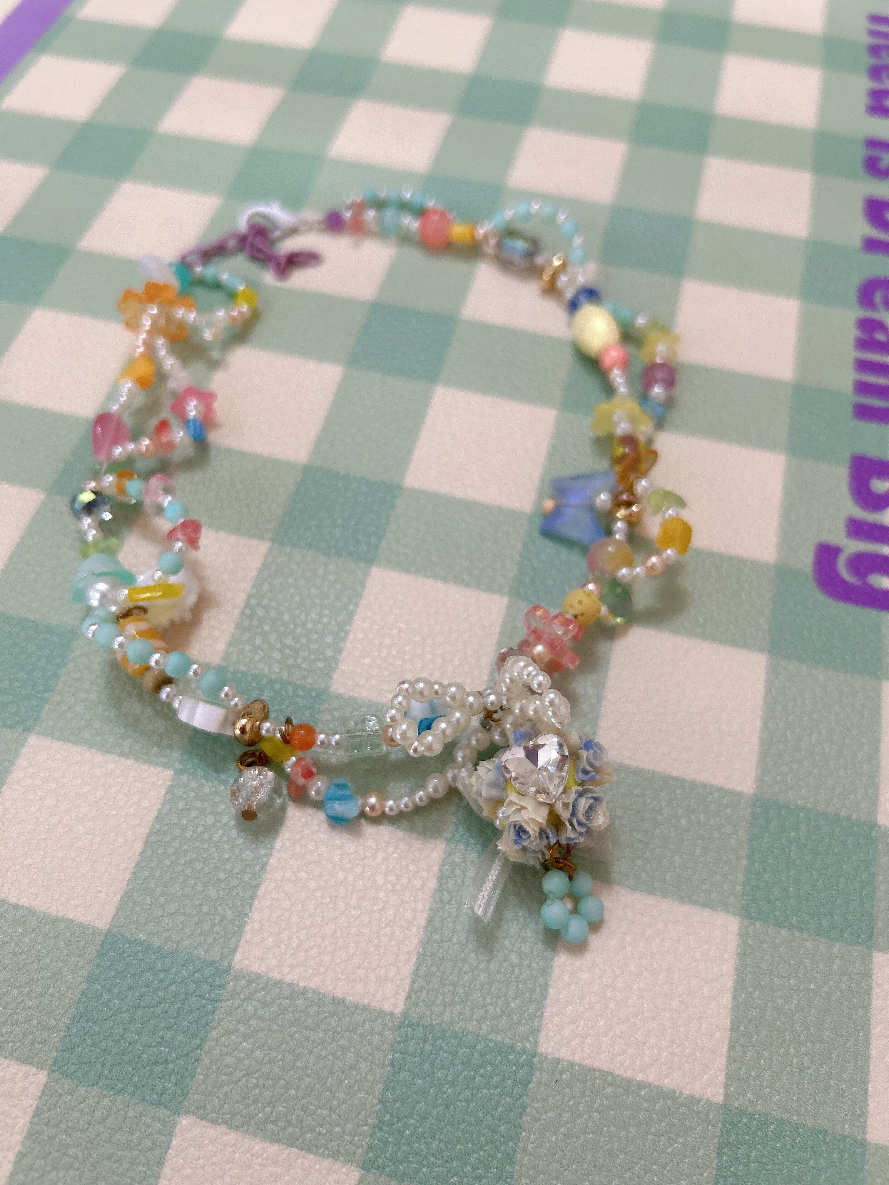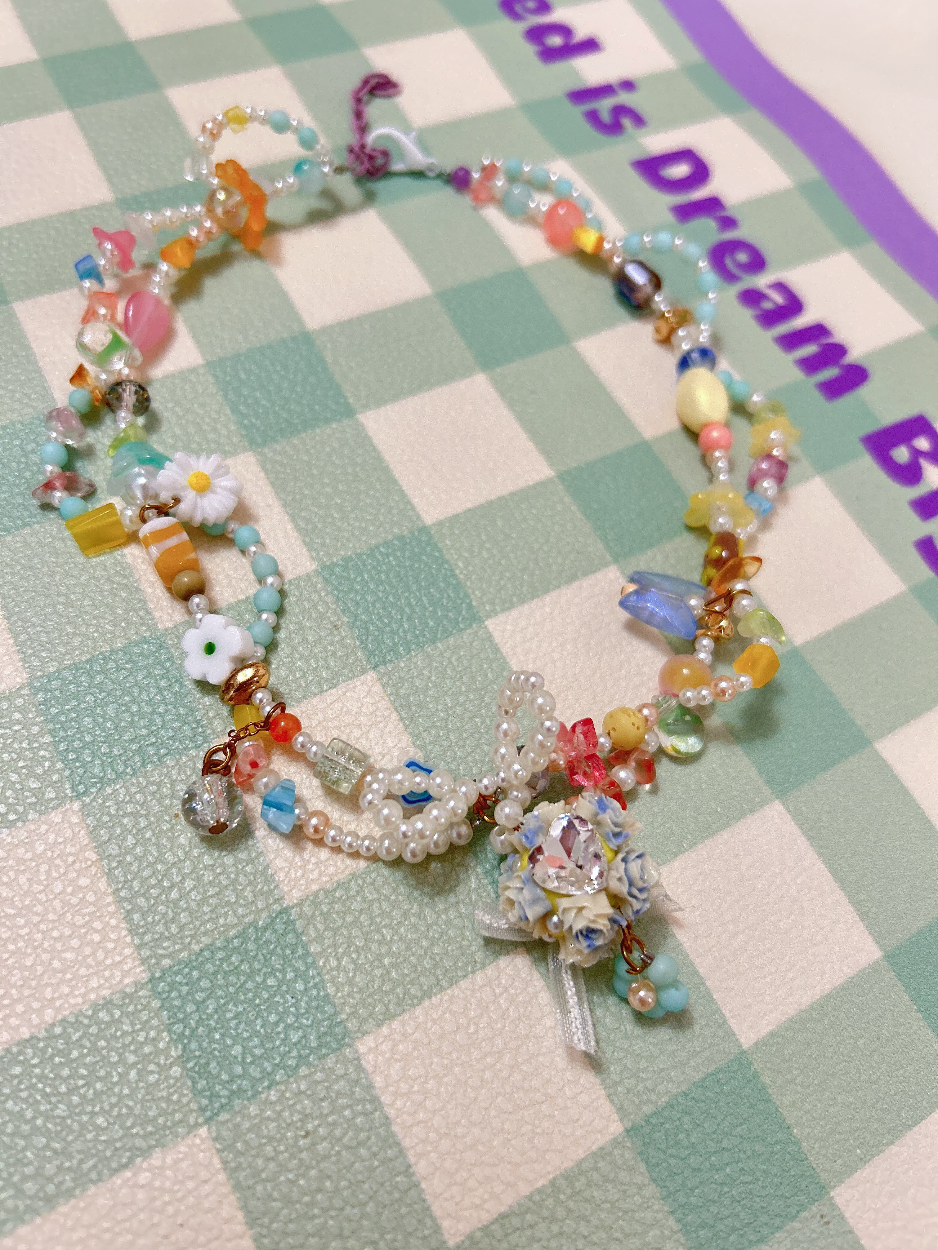 【現貨】泰國手作花球雙層珠珠頸鏈