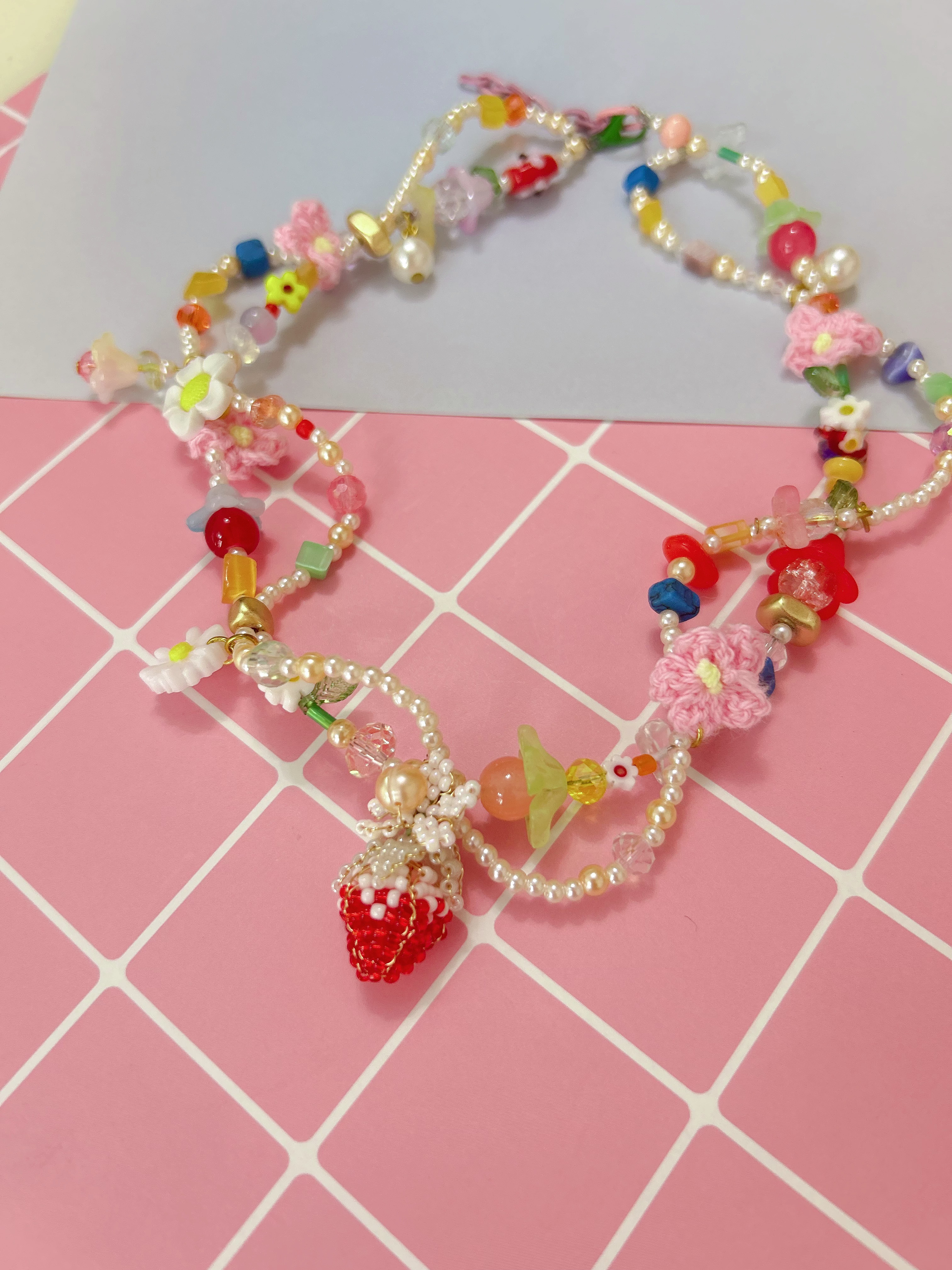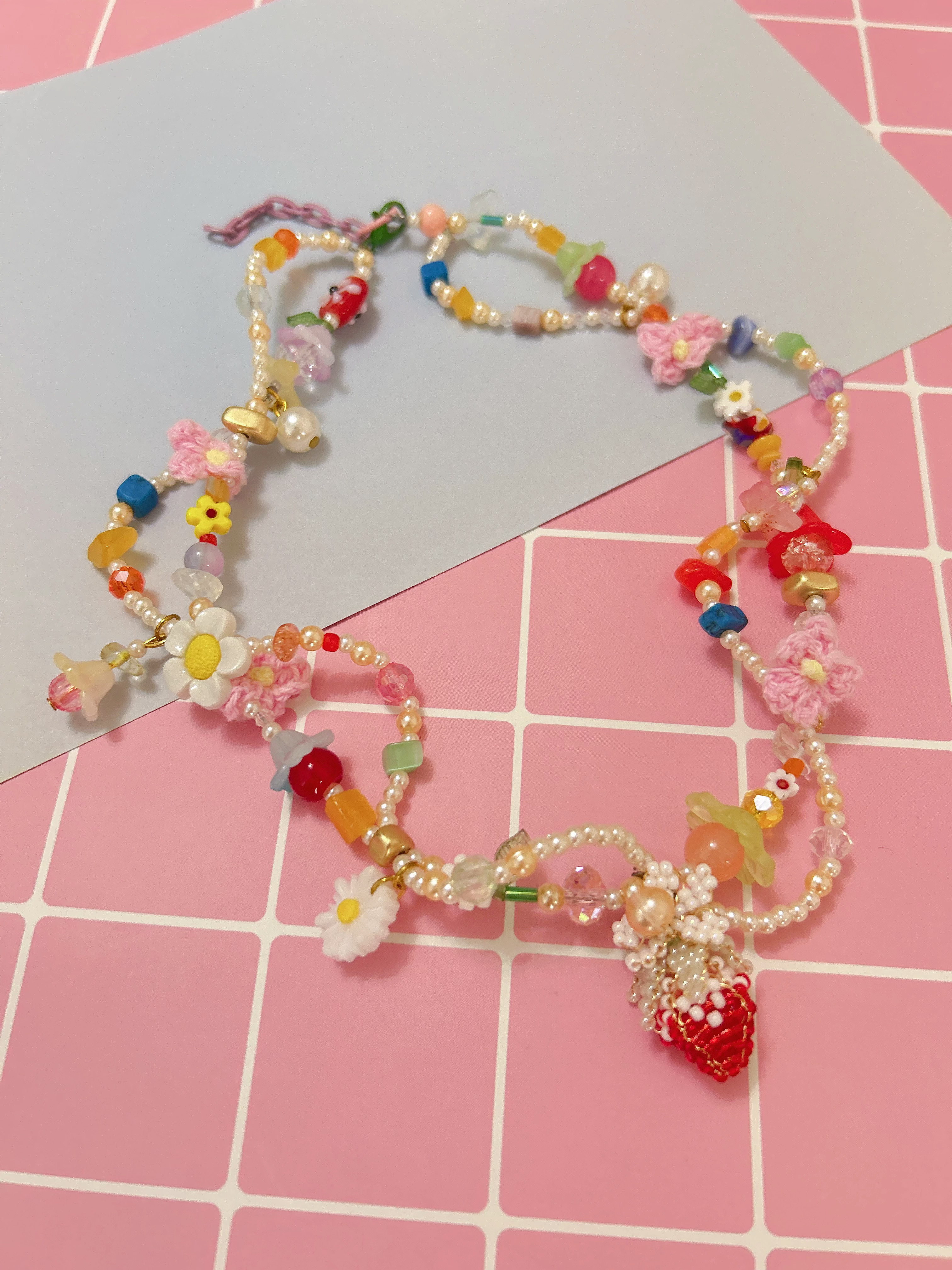 【現貨】泰國手作士多啤梨🍓雙層珠珠頸鏈