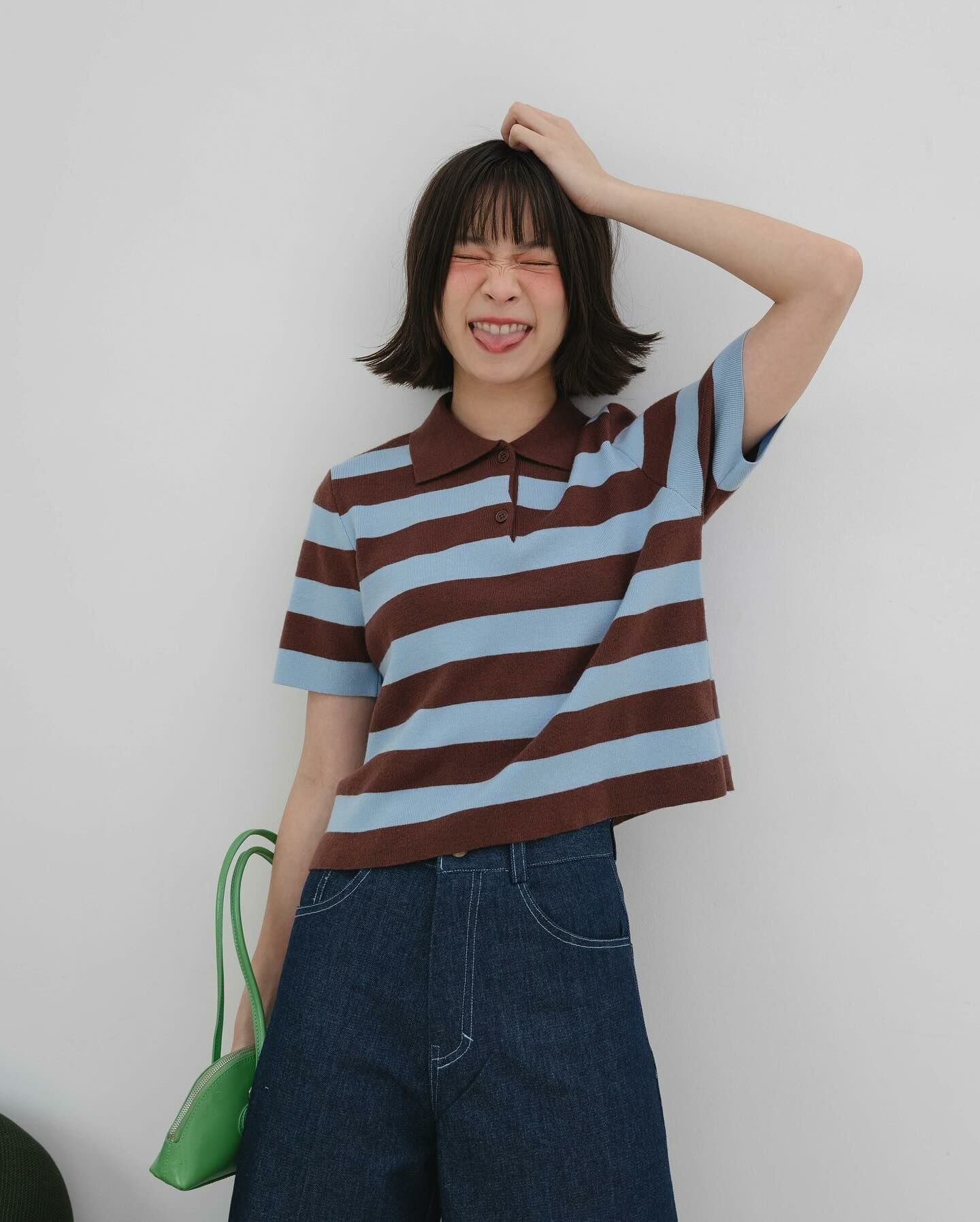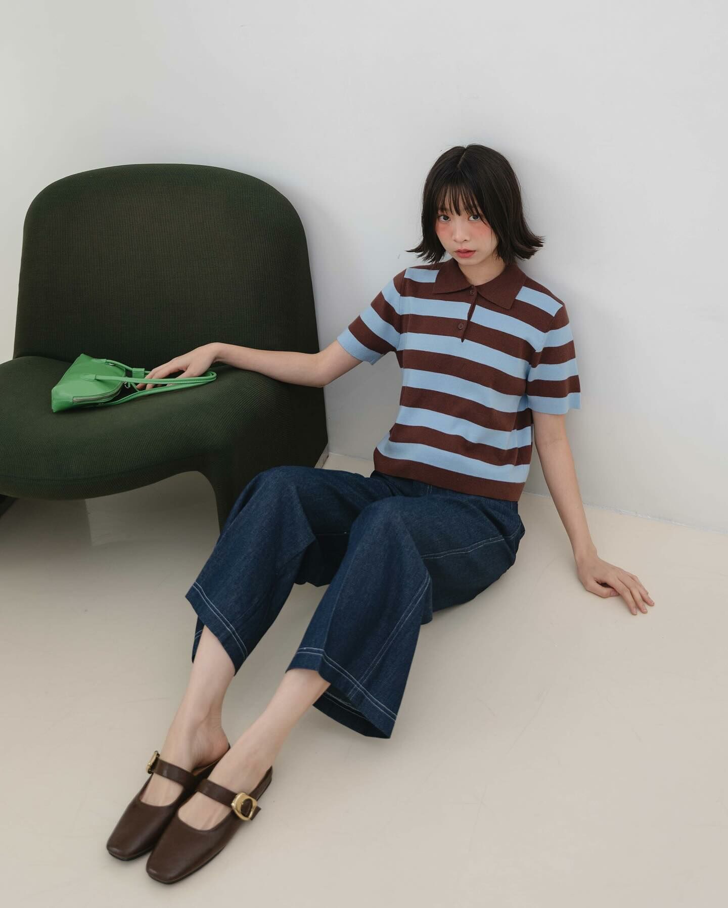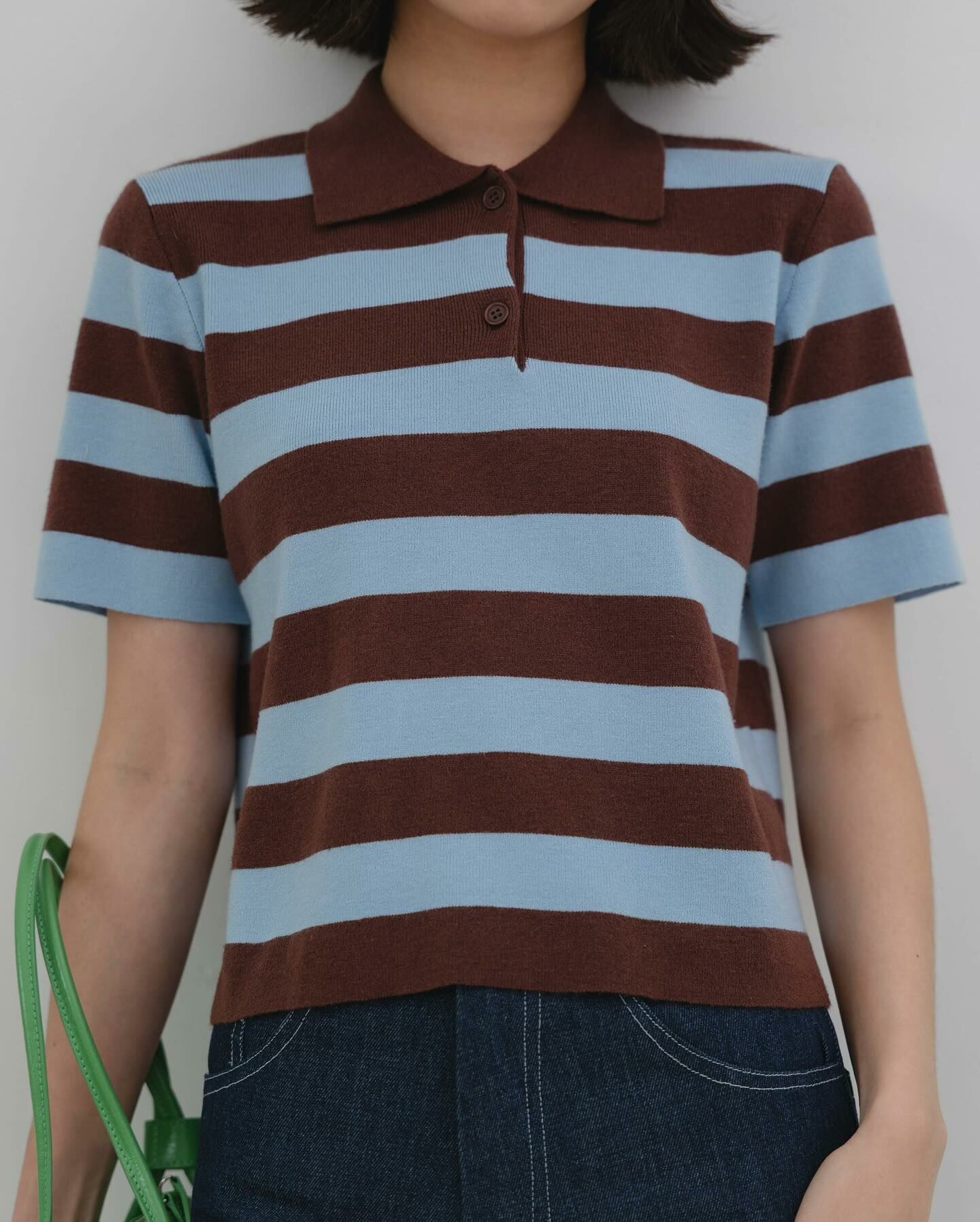 條紋襯衫,藍配棕色,這是今年的Patone色。