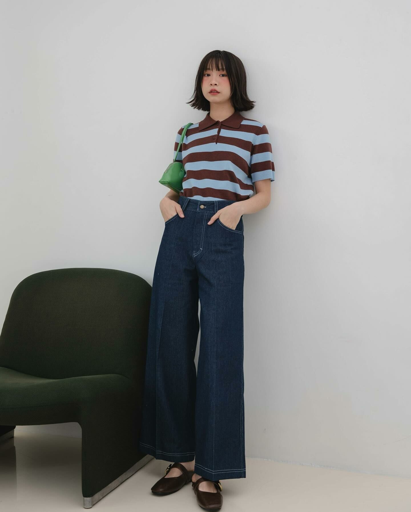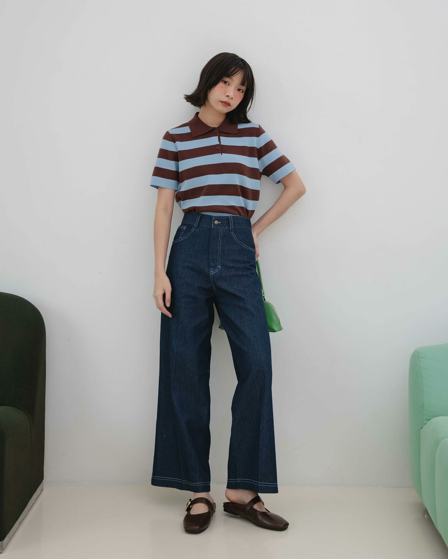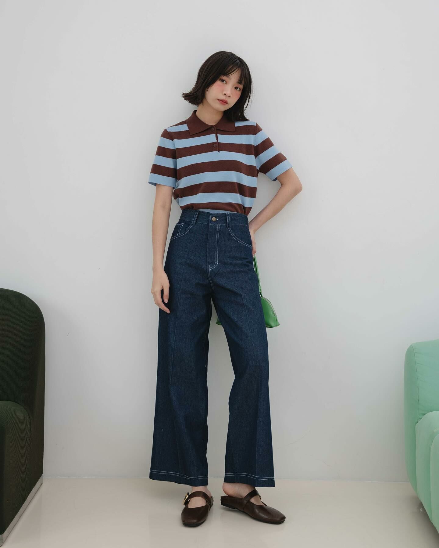 條紋襯衫,藍配棕色,這是今年的Patone色。