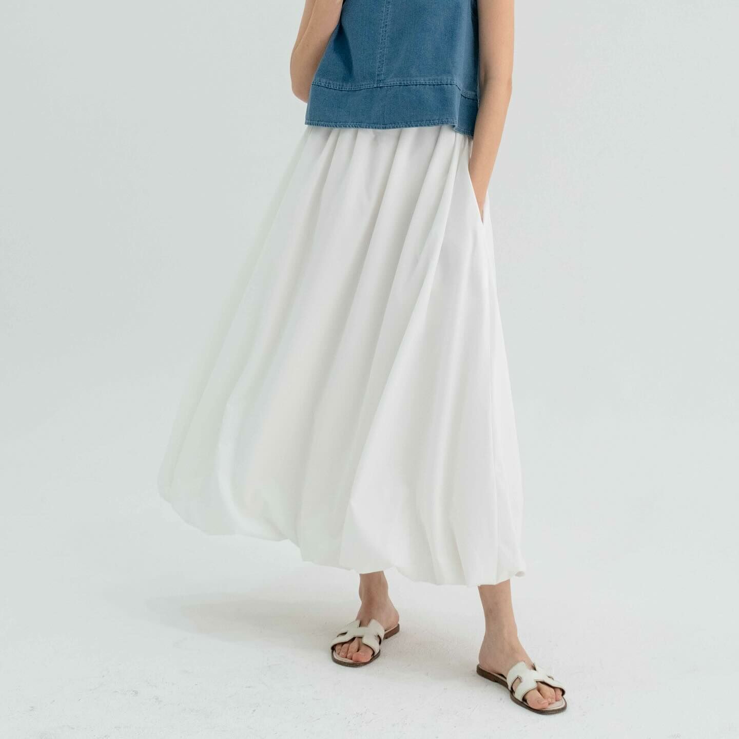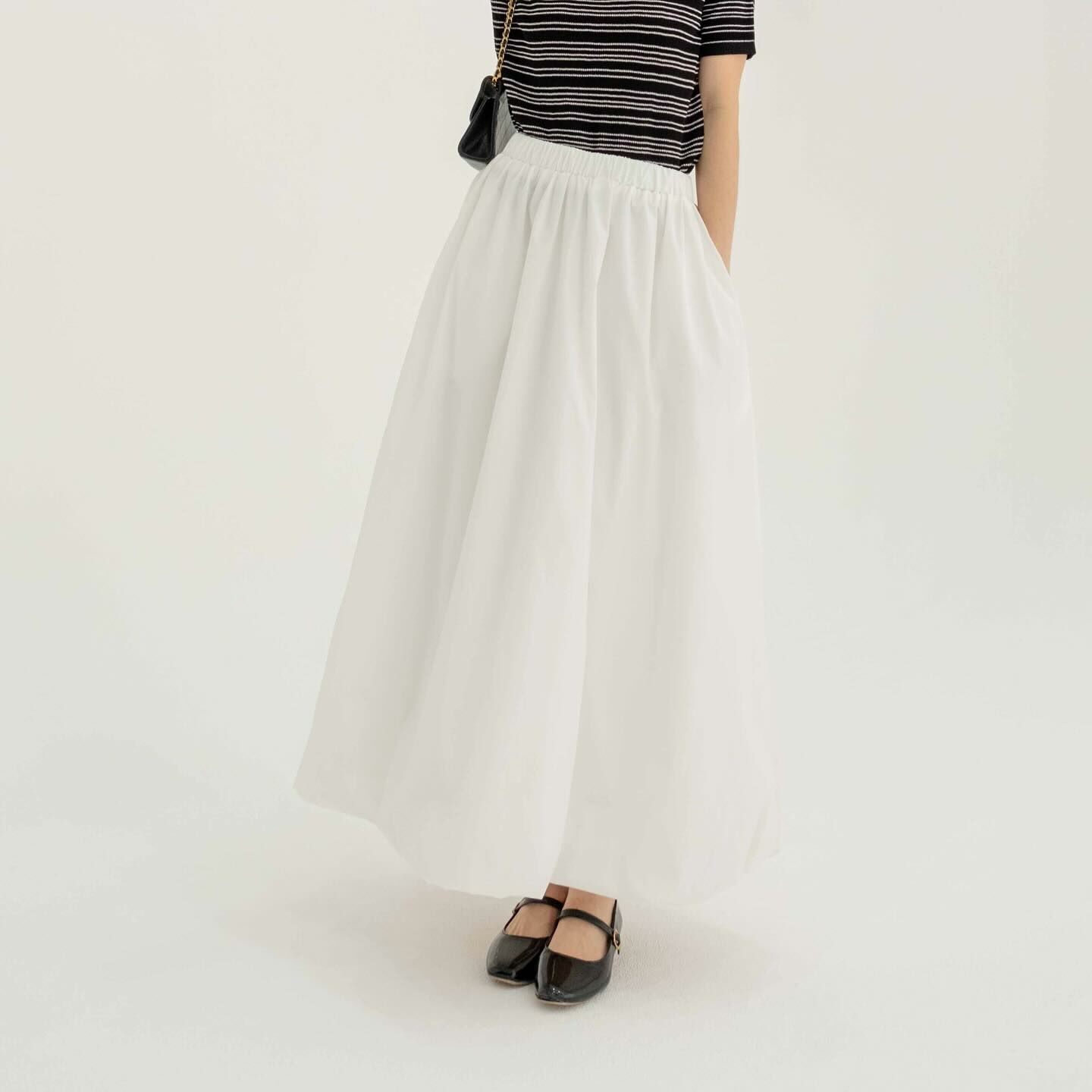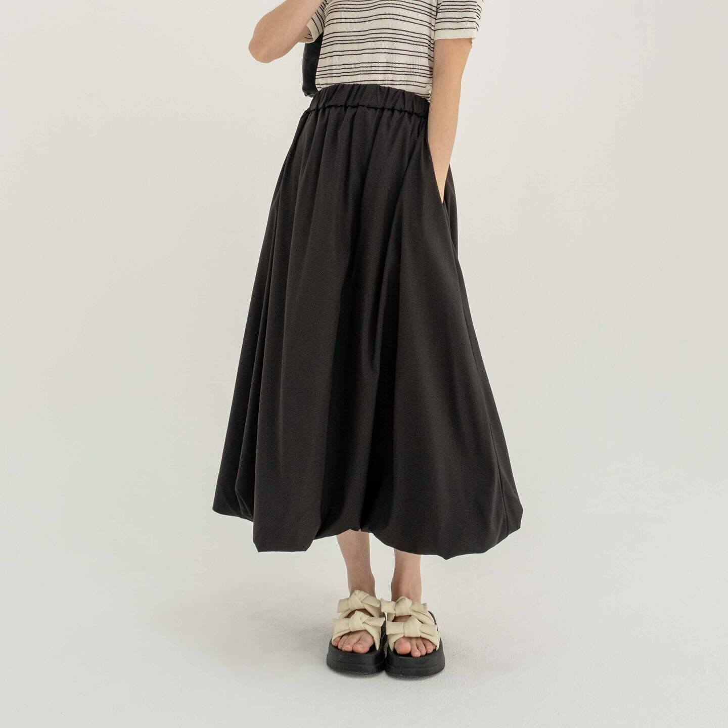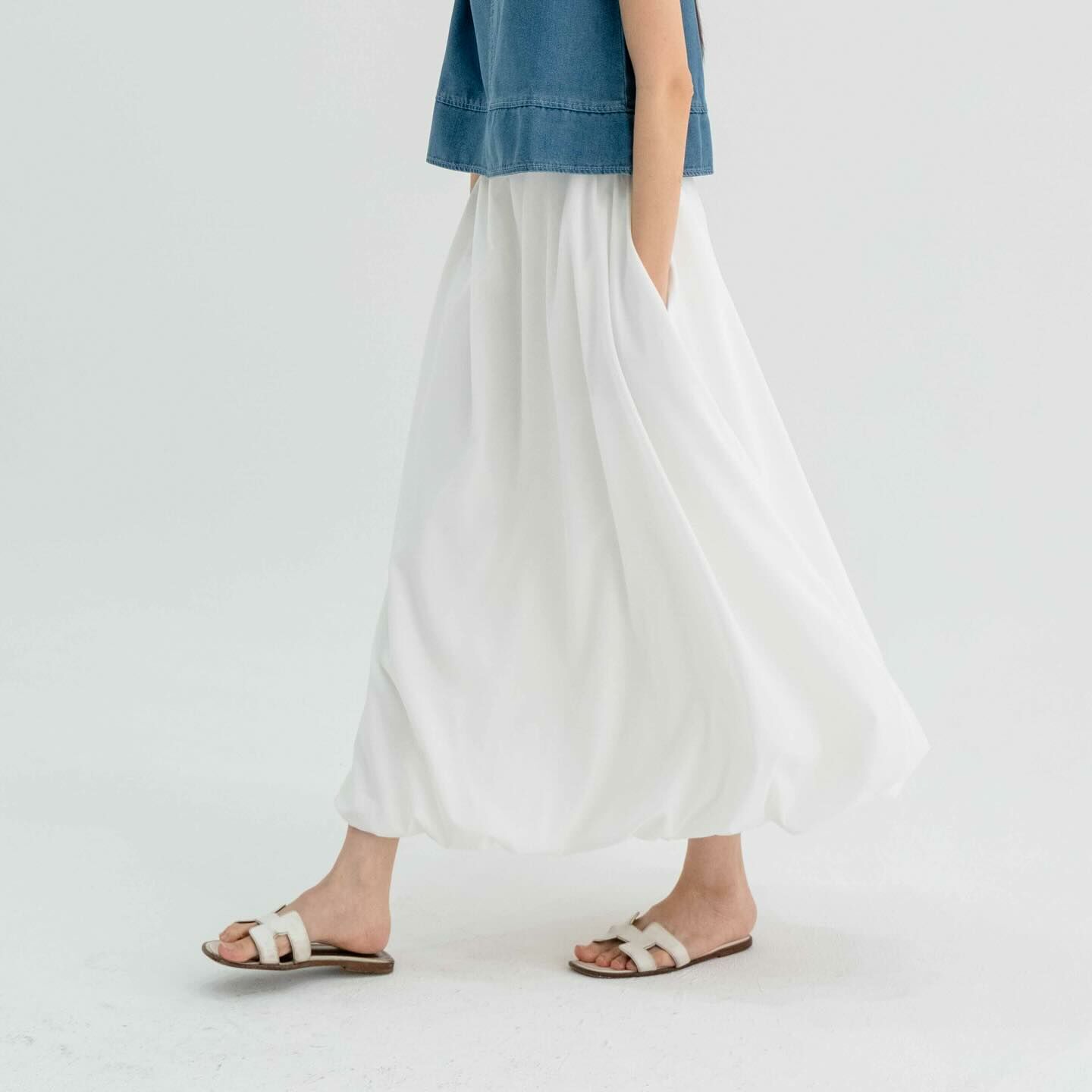 聚酯纖維布燈籠裙,側袋,鬆緊腰