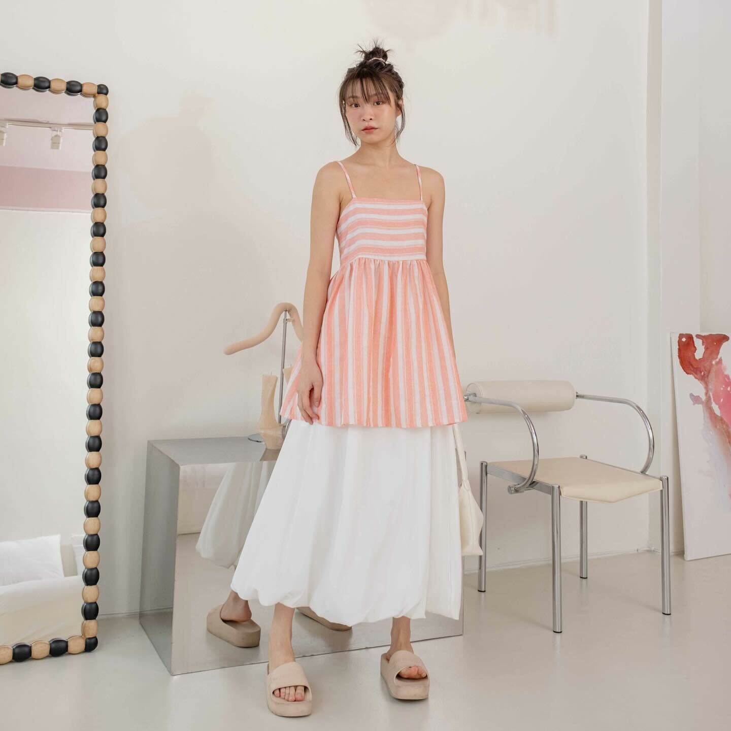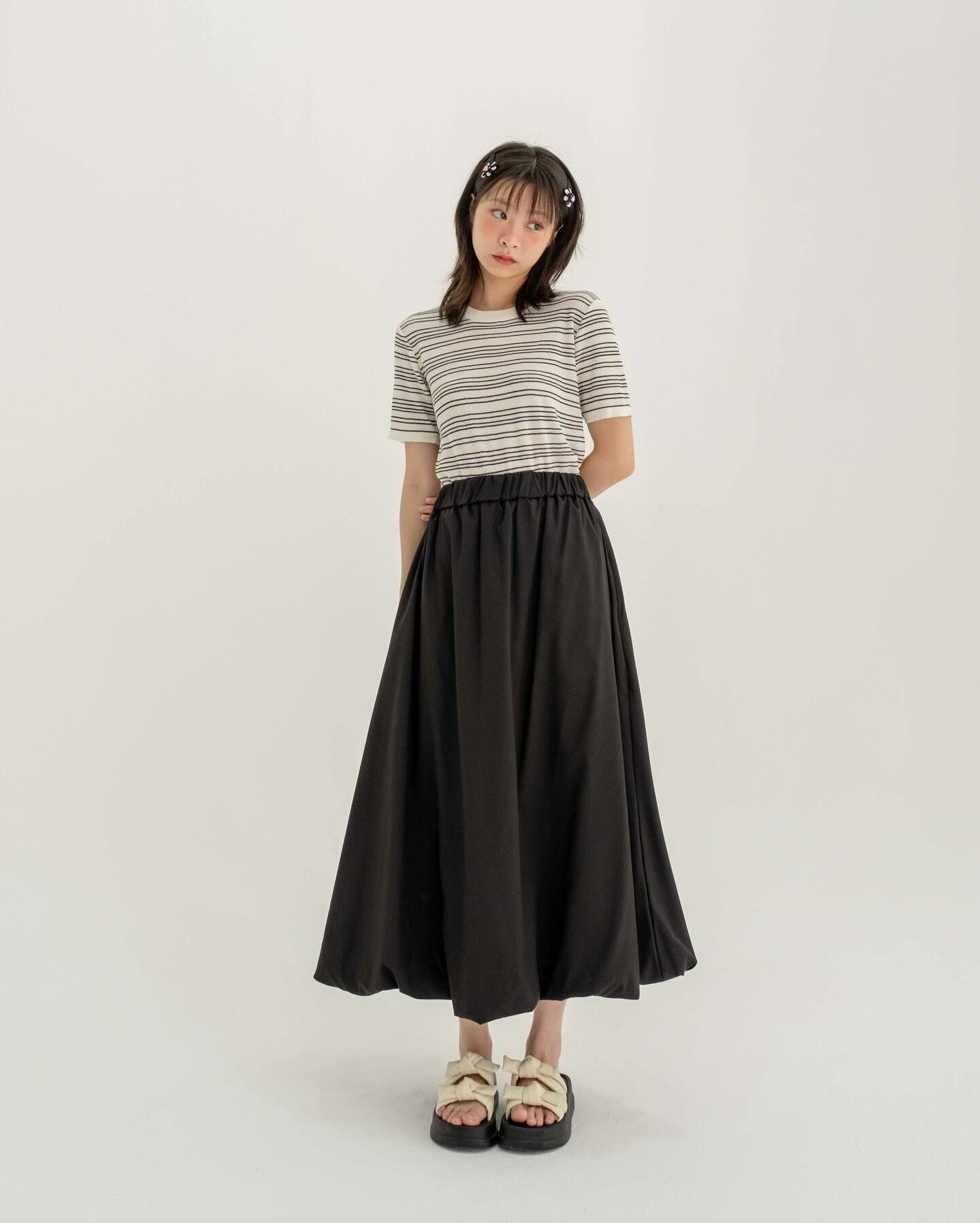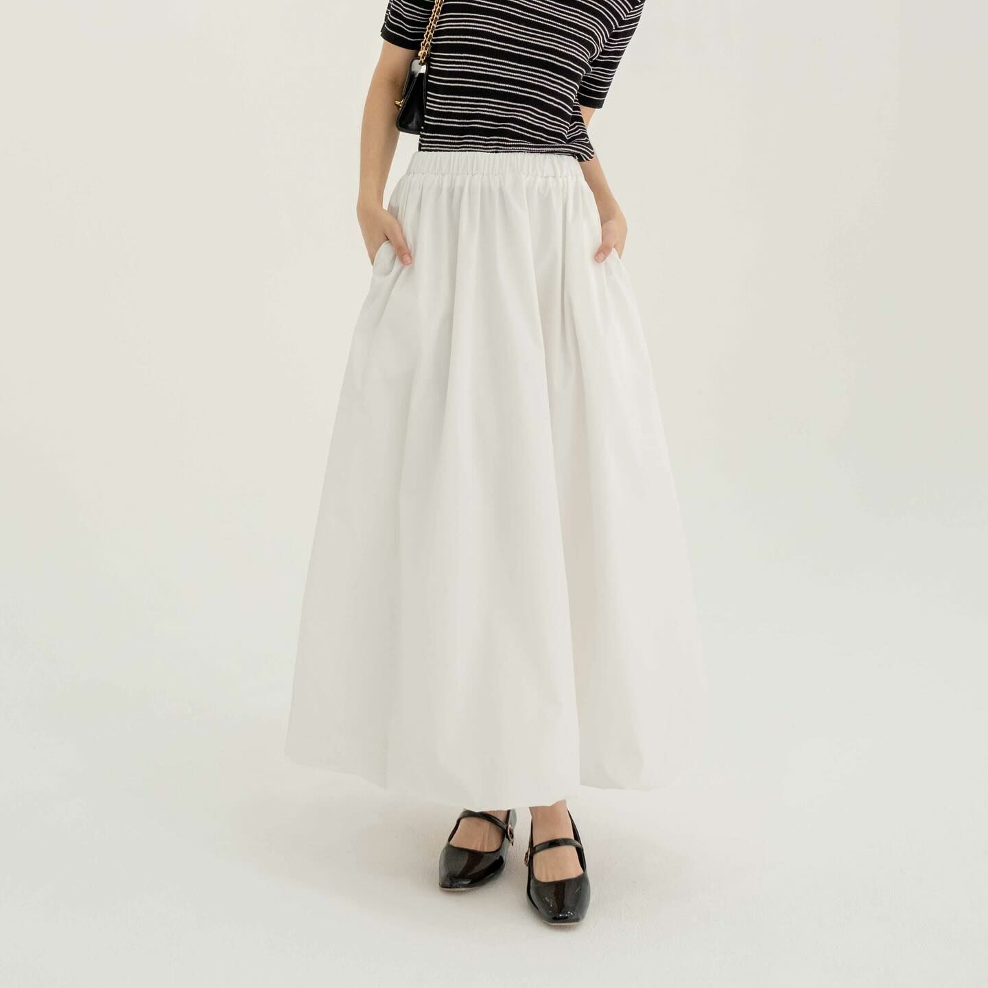 聚酯纖維布燈籠裙,側袋,鬆緊腰