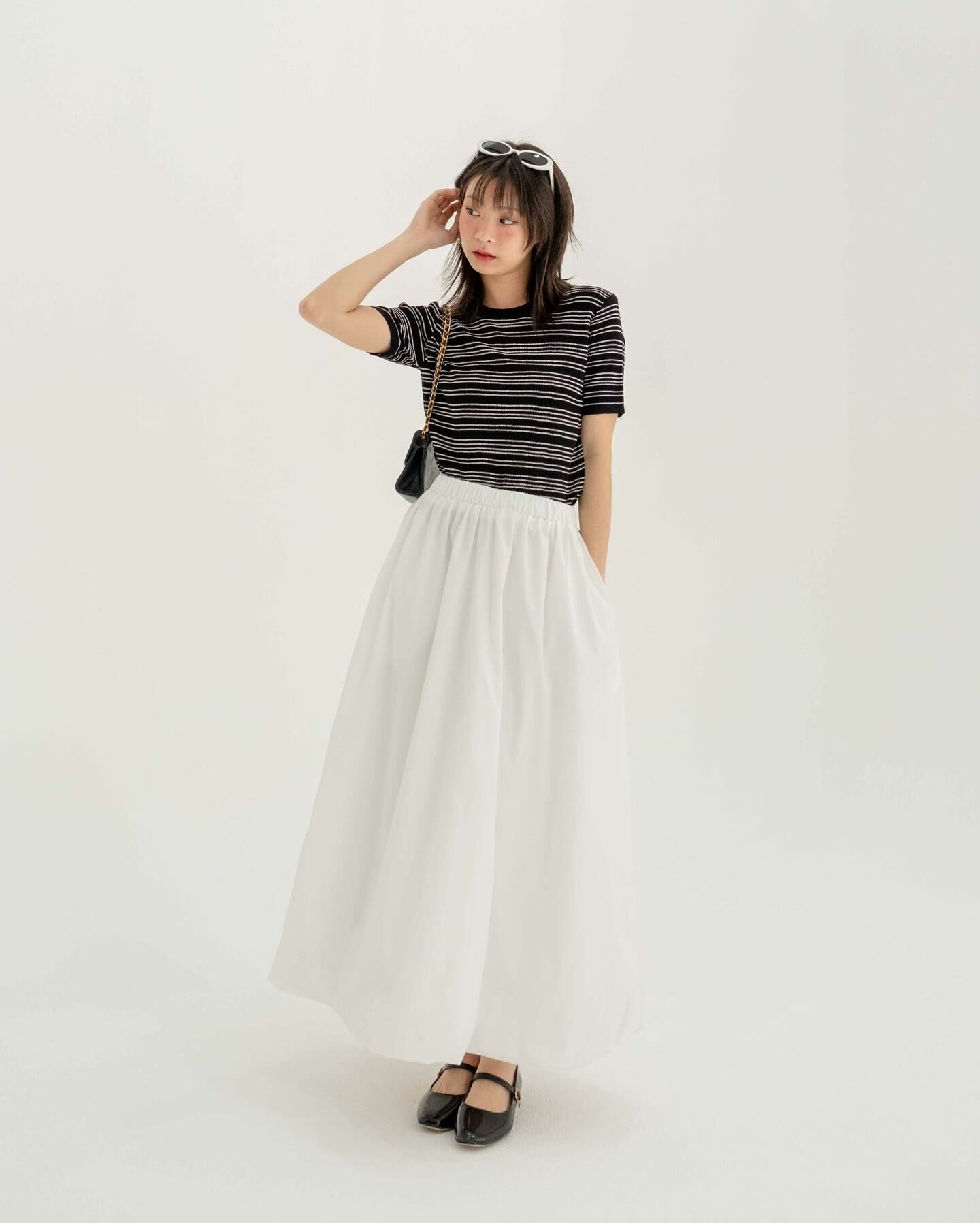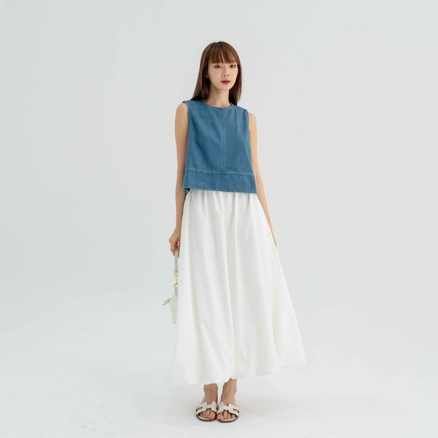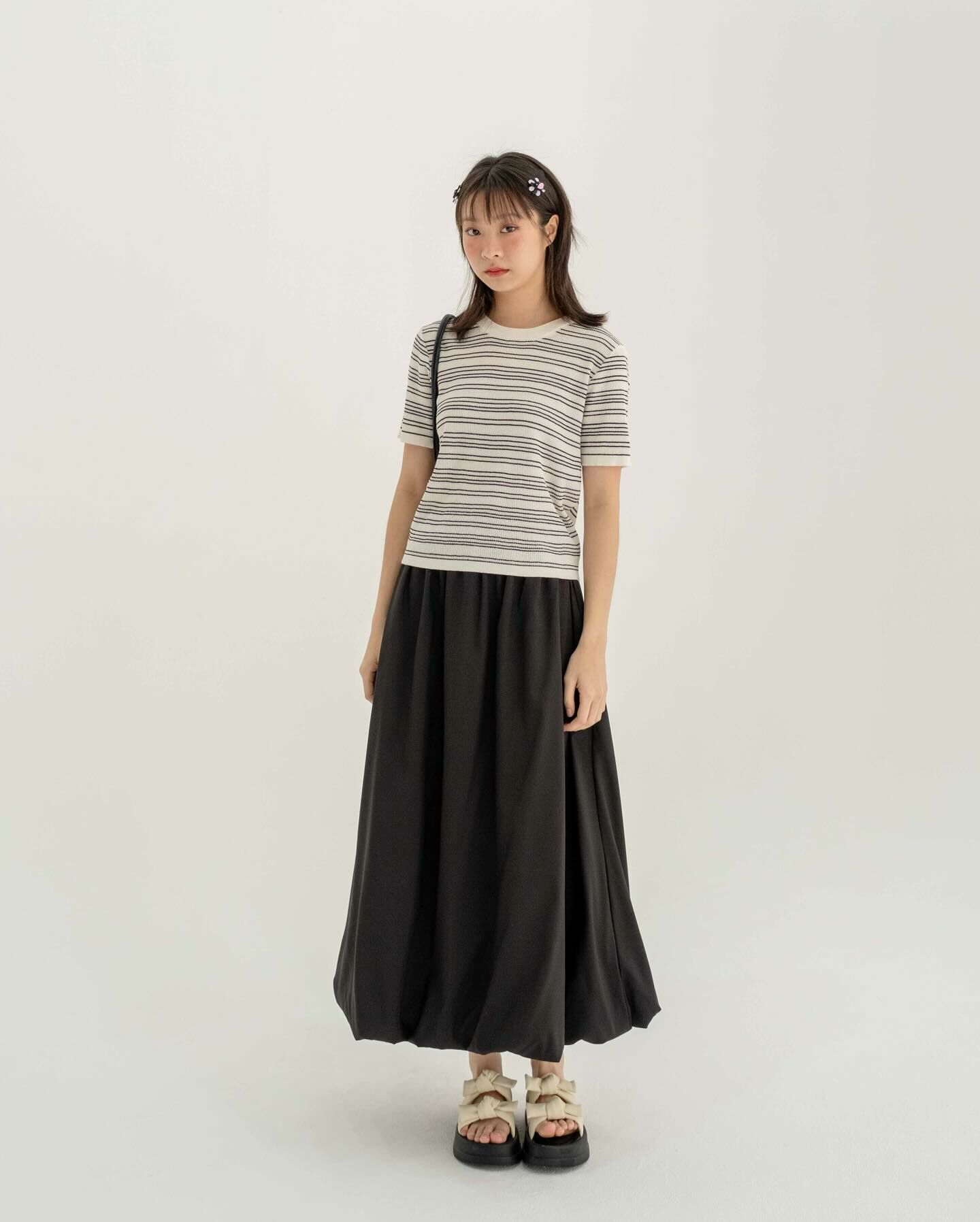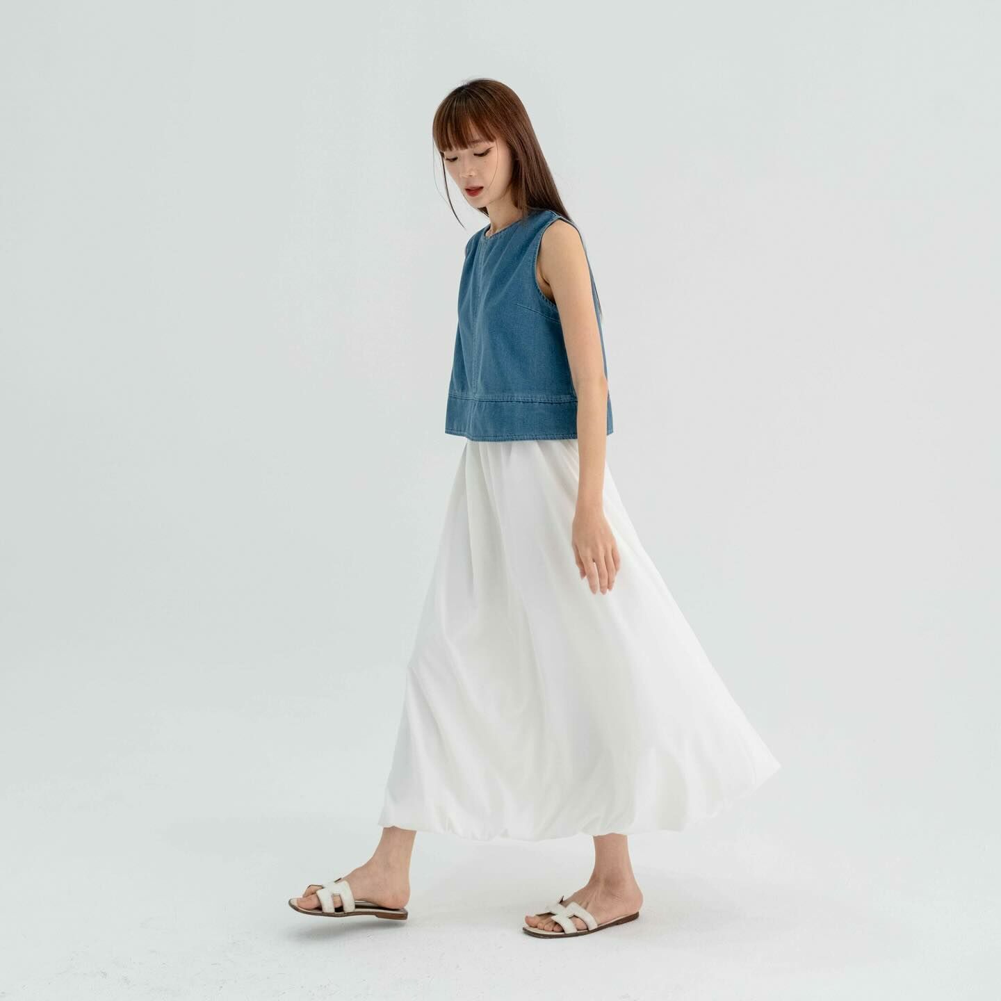 聚酯纖維布燈籠裙,側袋,鬆緊腰