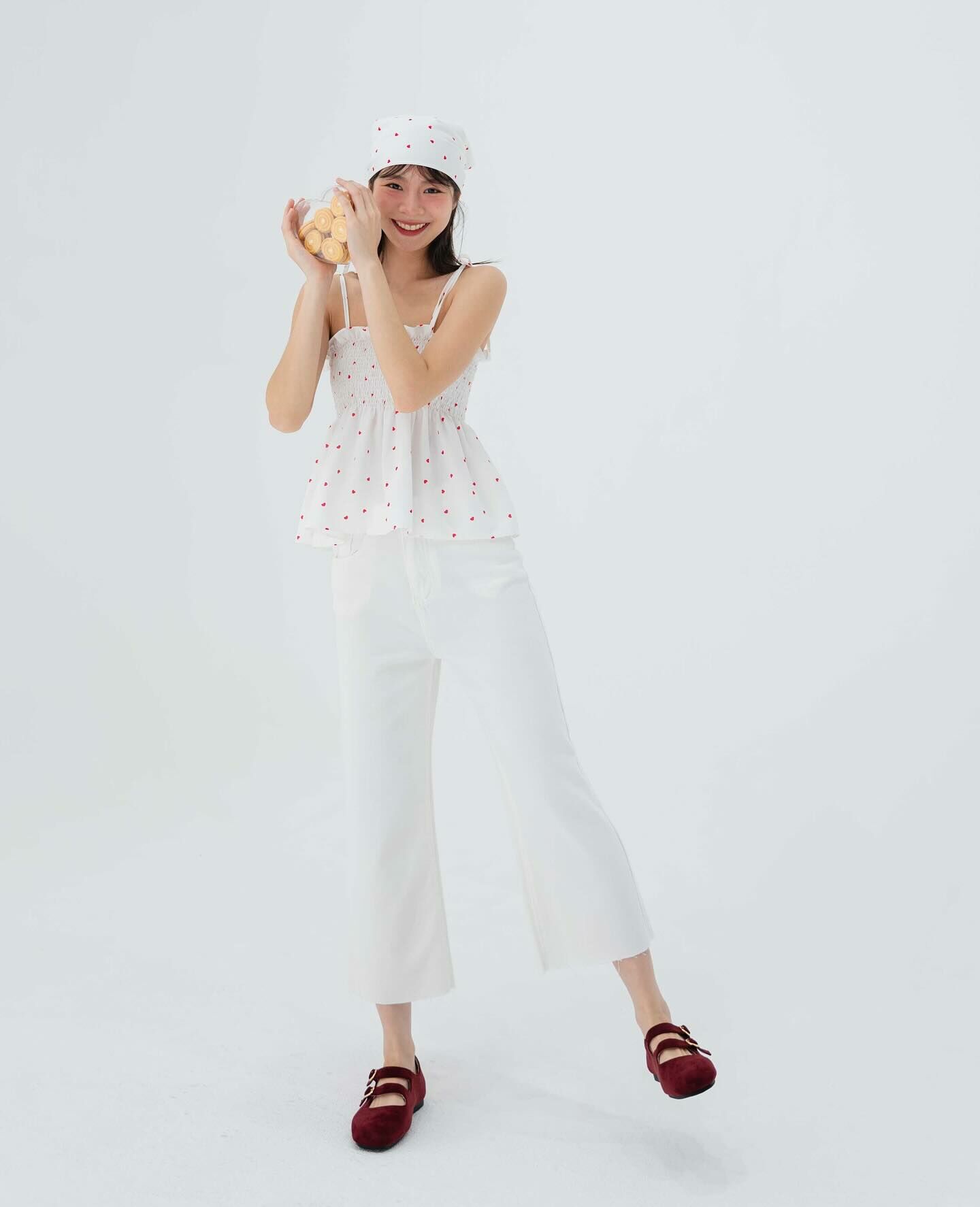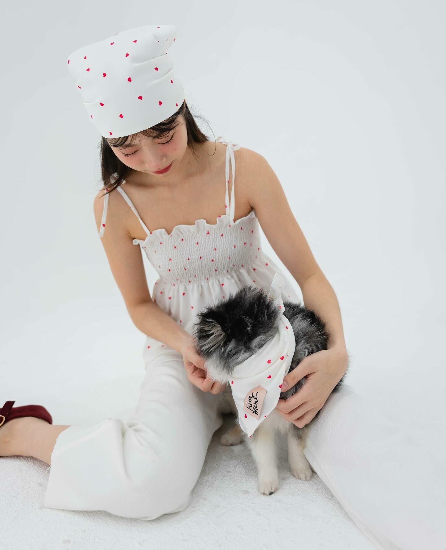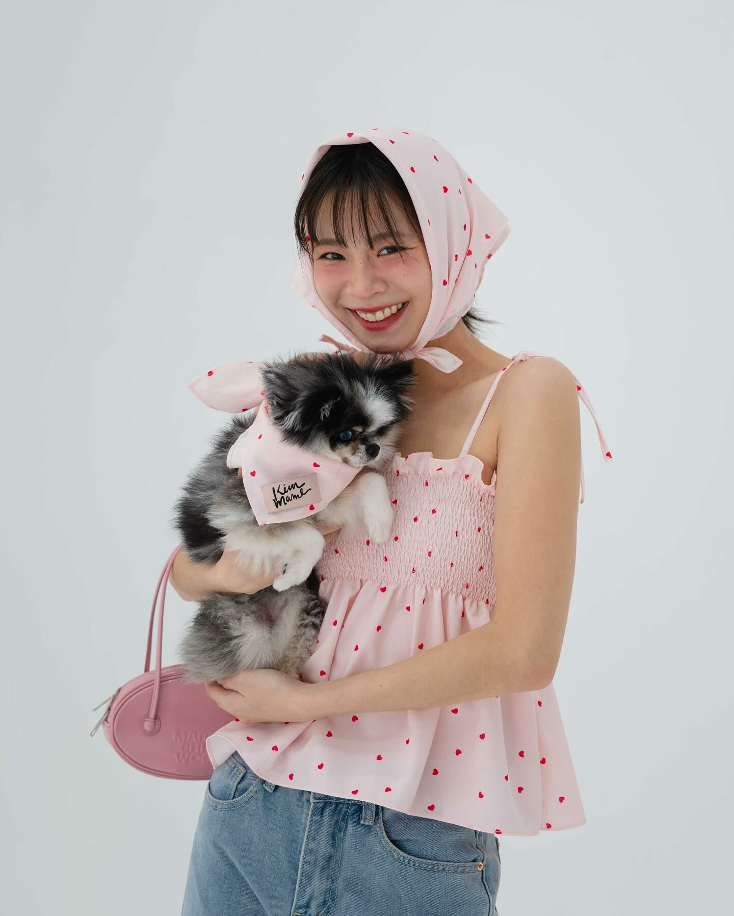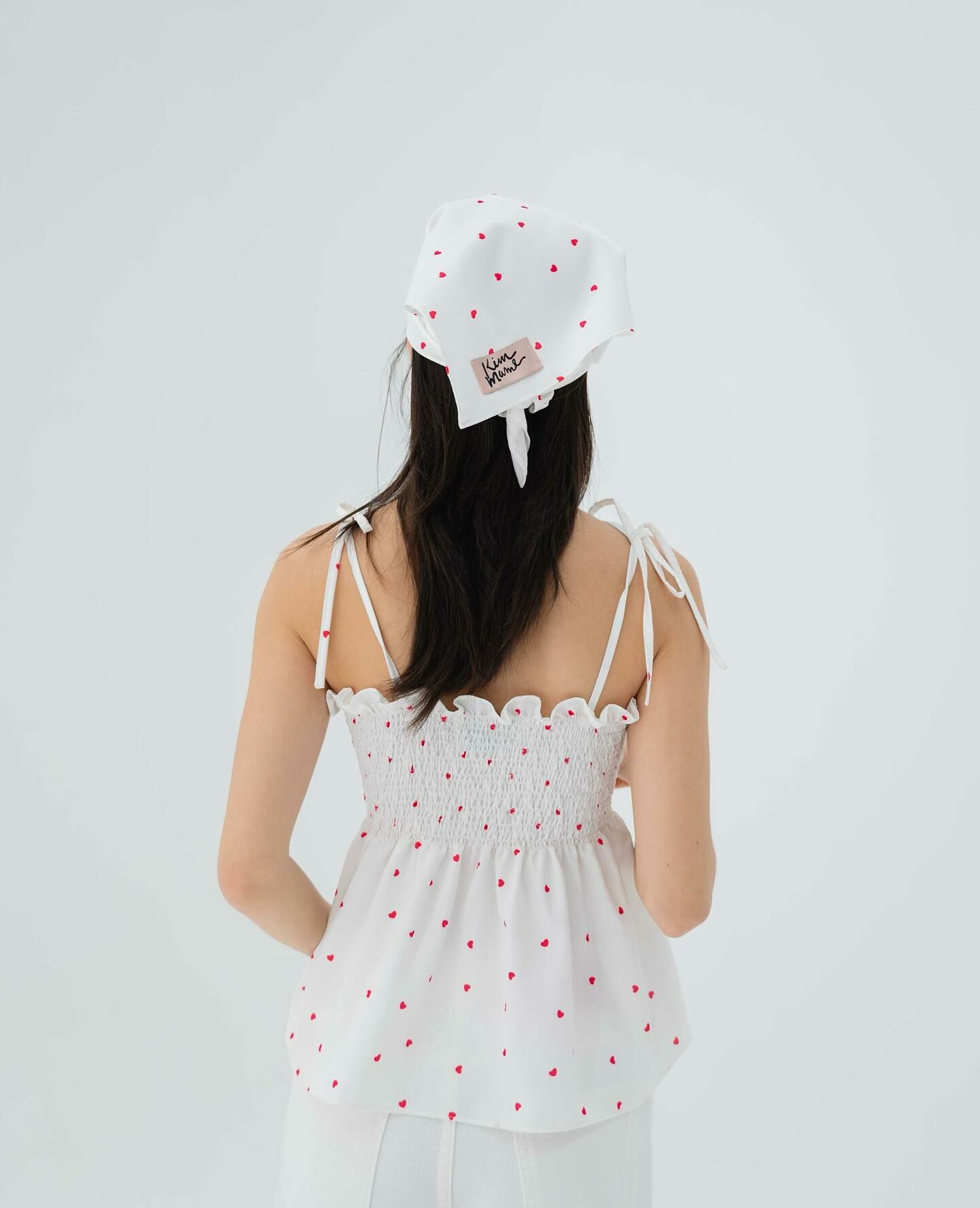 細肩帶上衣,手拿包布料,心形圖案,領結,褶飾胸部,超可愛