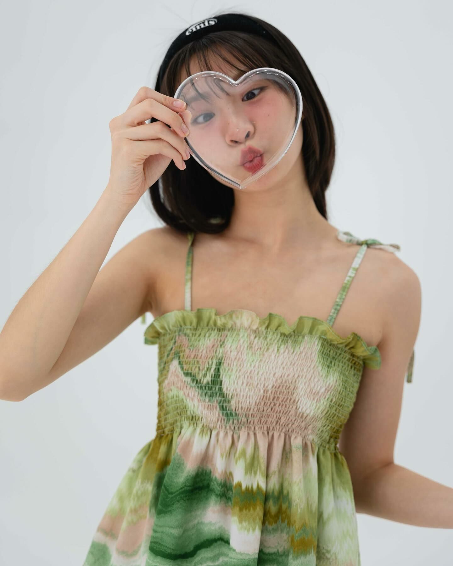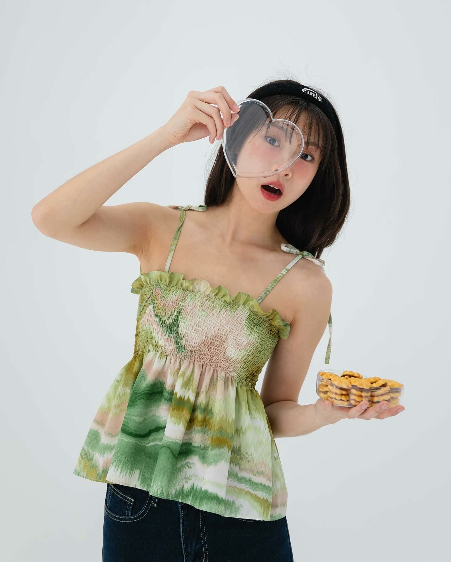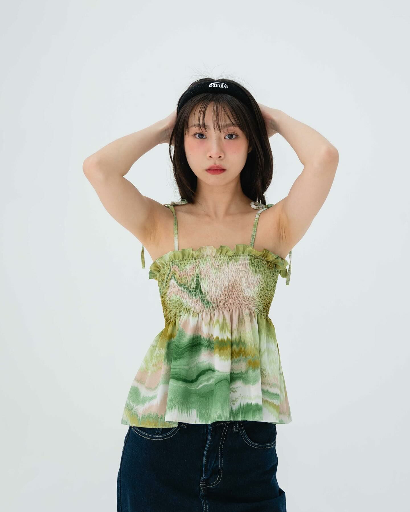 細肩帶上衣,手拿包布料,領結,褶飾胸部,超可愛