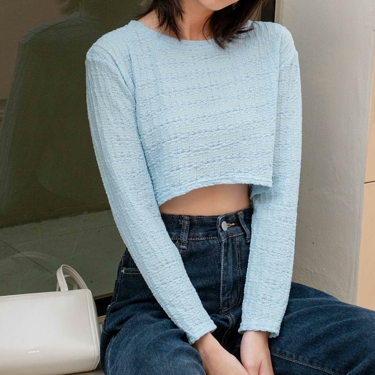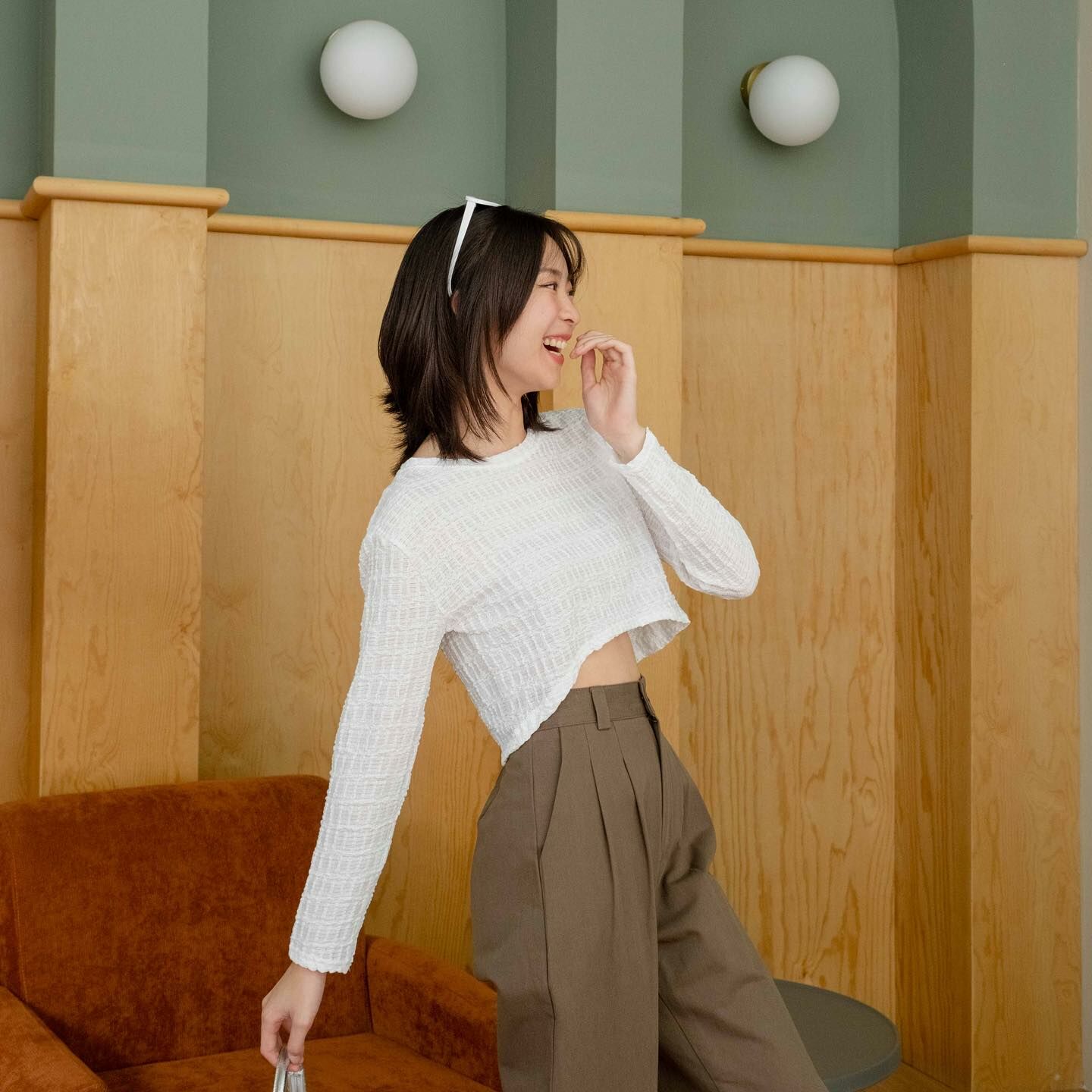 長袖襯衫,皺巴巴的面料。無需熨燙,裁剪形狀。