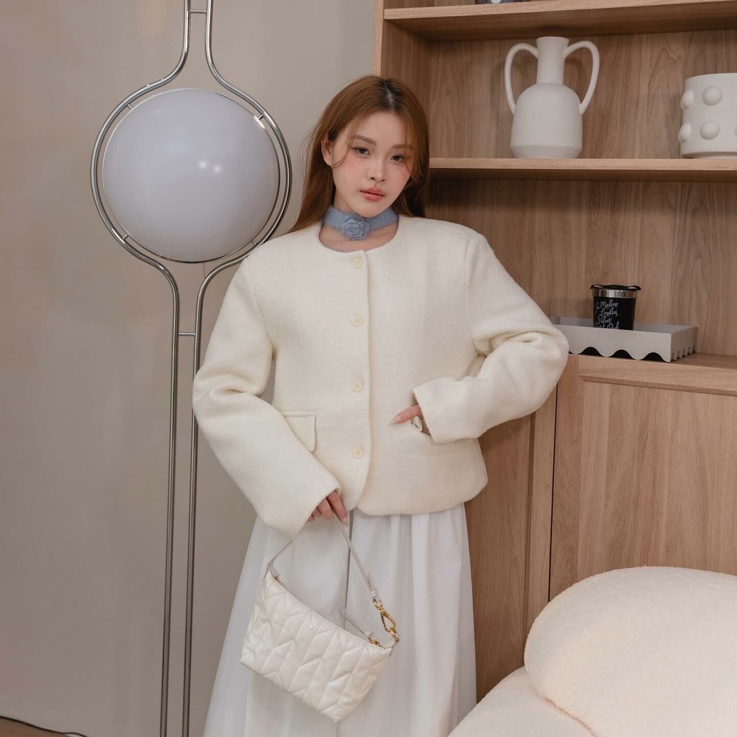 帶有鴨絨襯裡的羊毛開襟衫,適合 10-15 度。顏色很好看。圖案簡單但美麗。它可以和很多東西搭配。