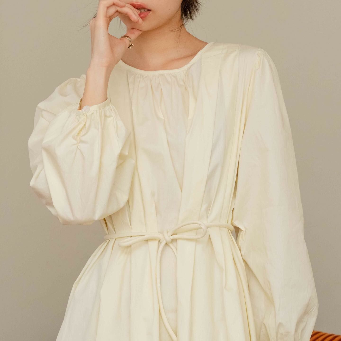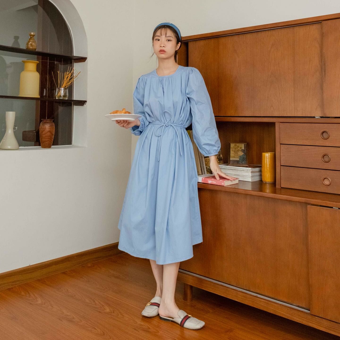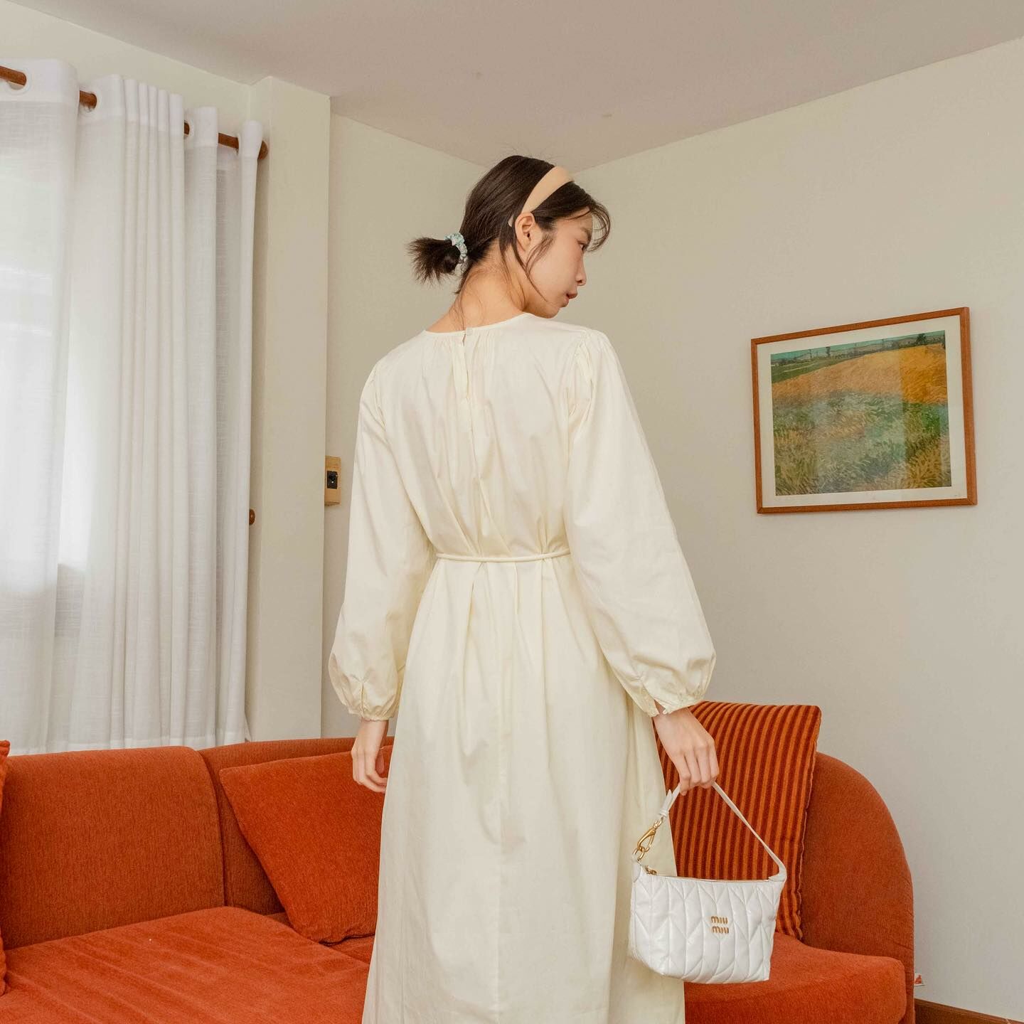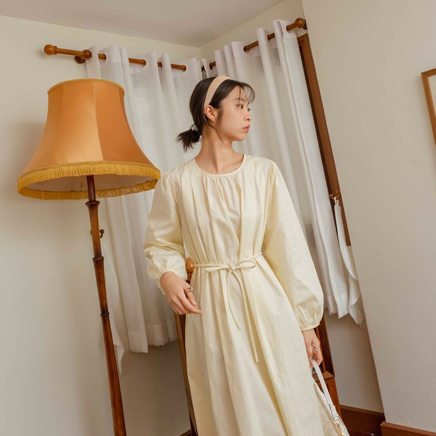 優質棉質連身裙,長袖,寬鬆版型,配有單獨的拉繩,可將其綁起來。