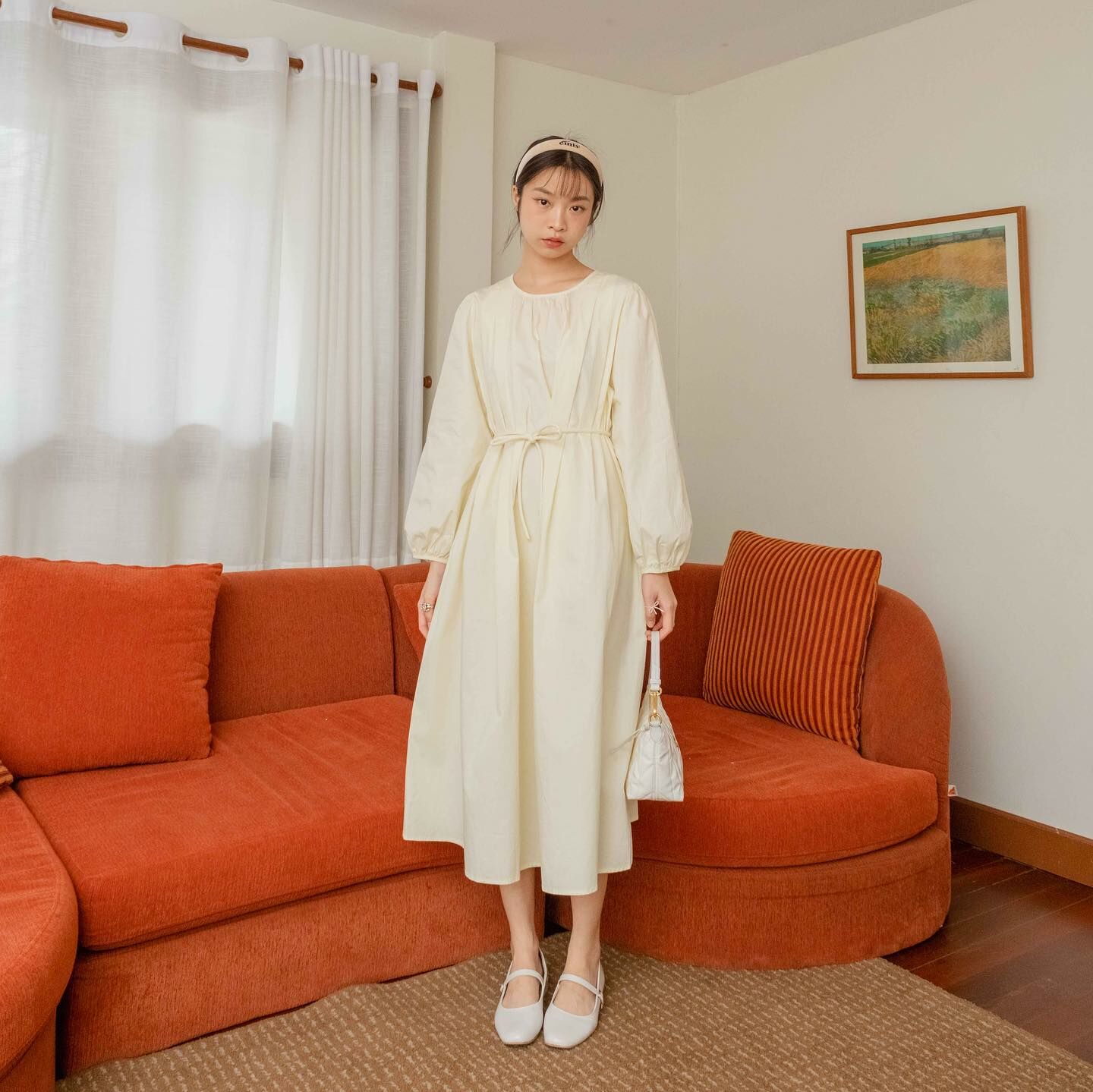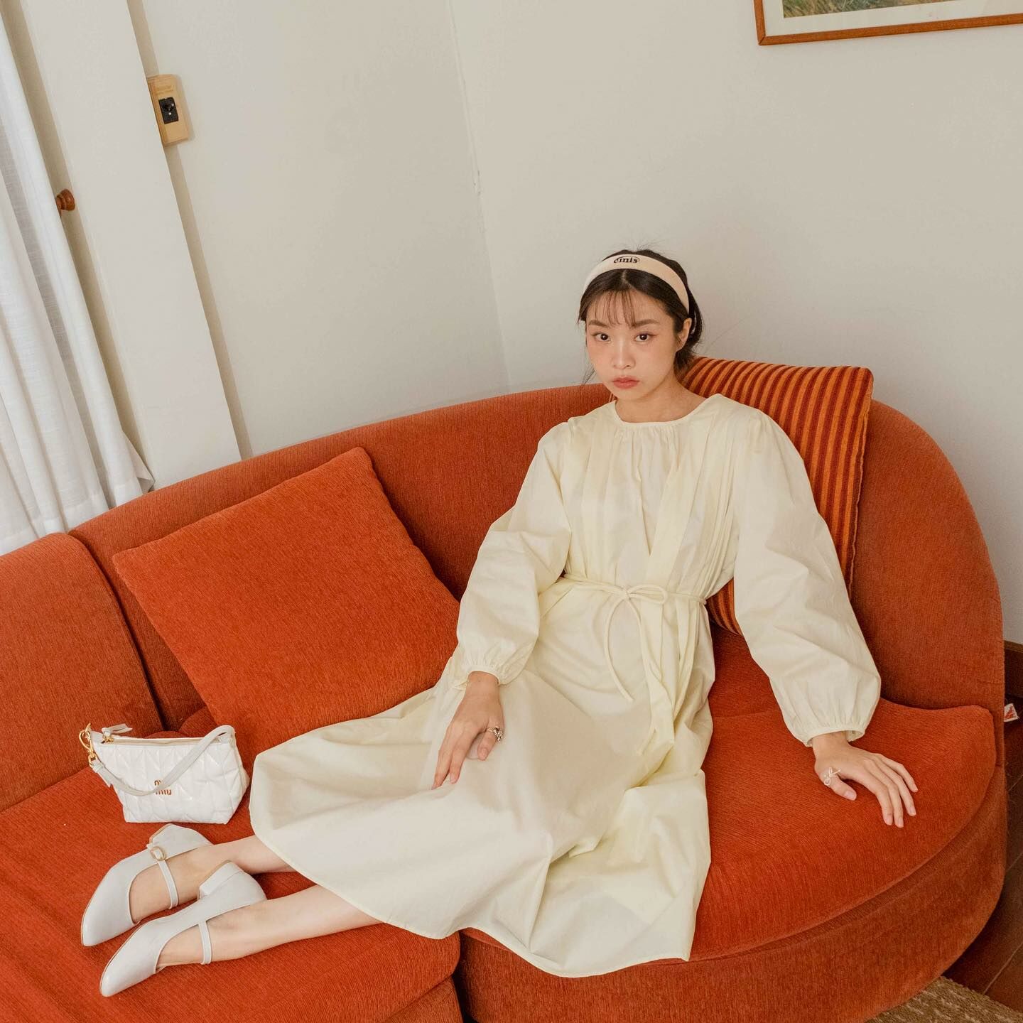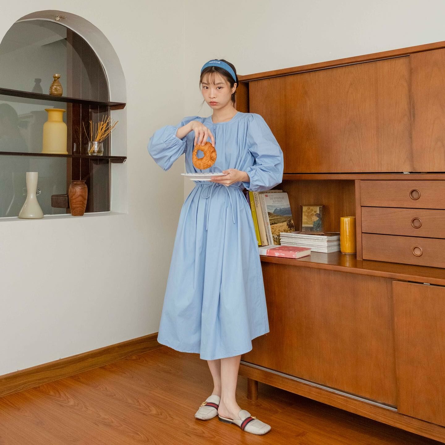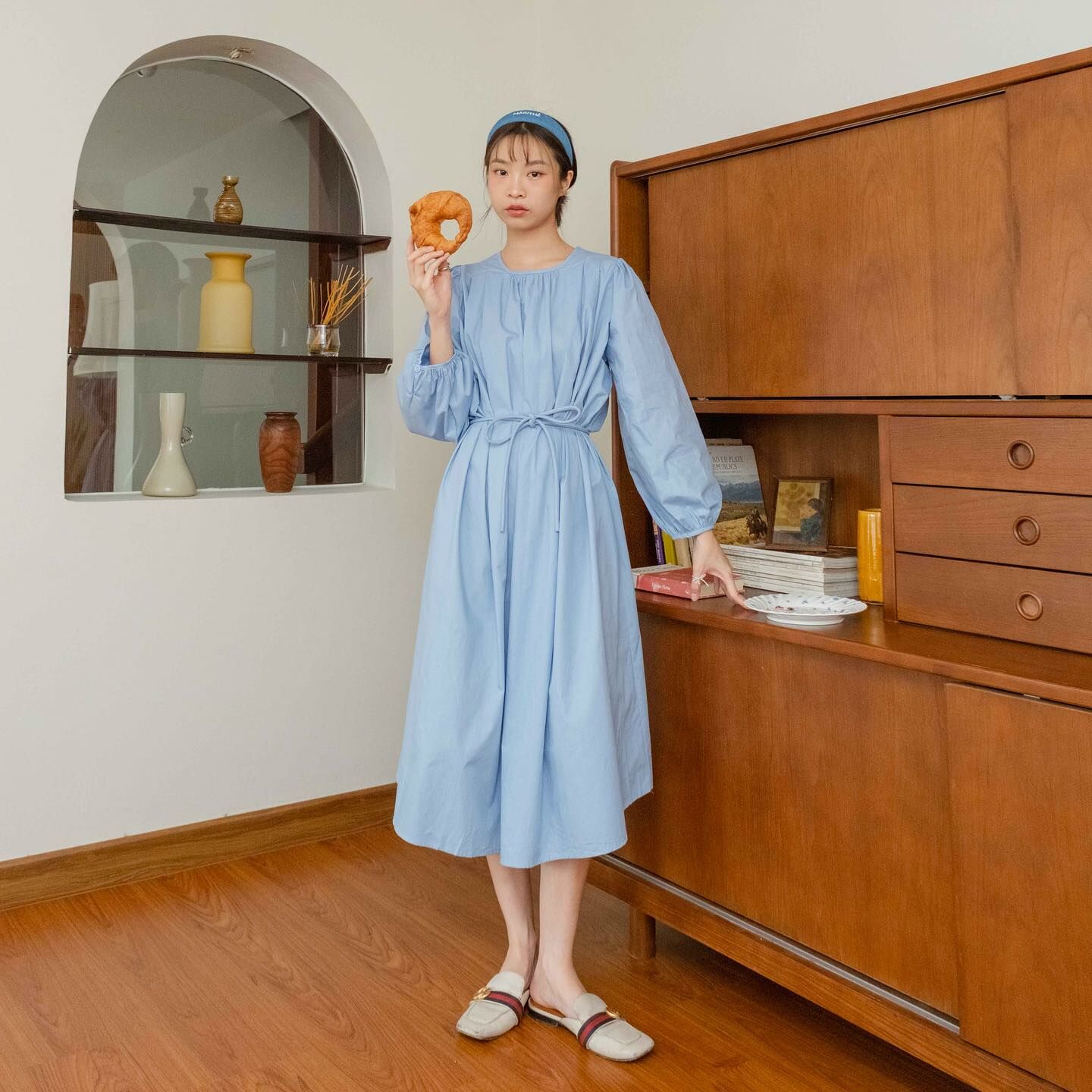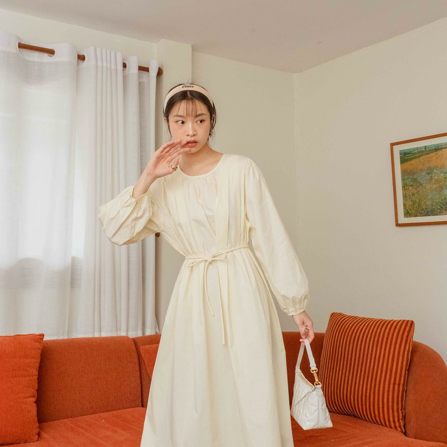 優質棉質連身裙,長袖,寬鬆版型,配有單獨的拉繩,可將其綁起來。
