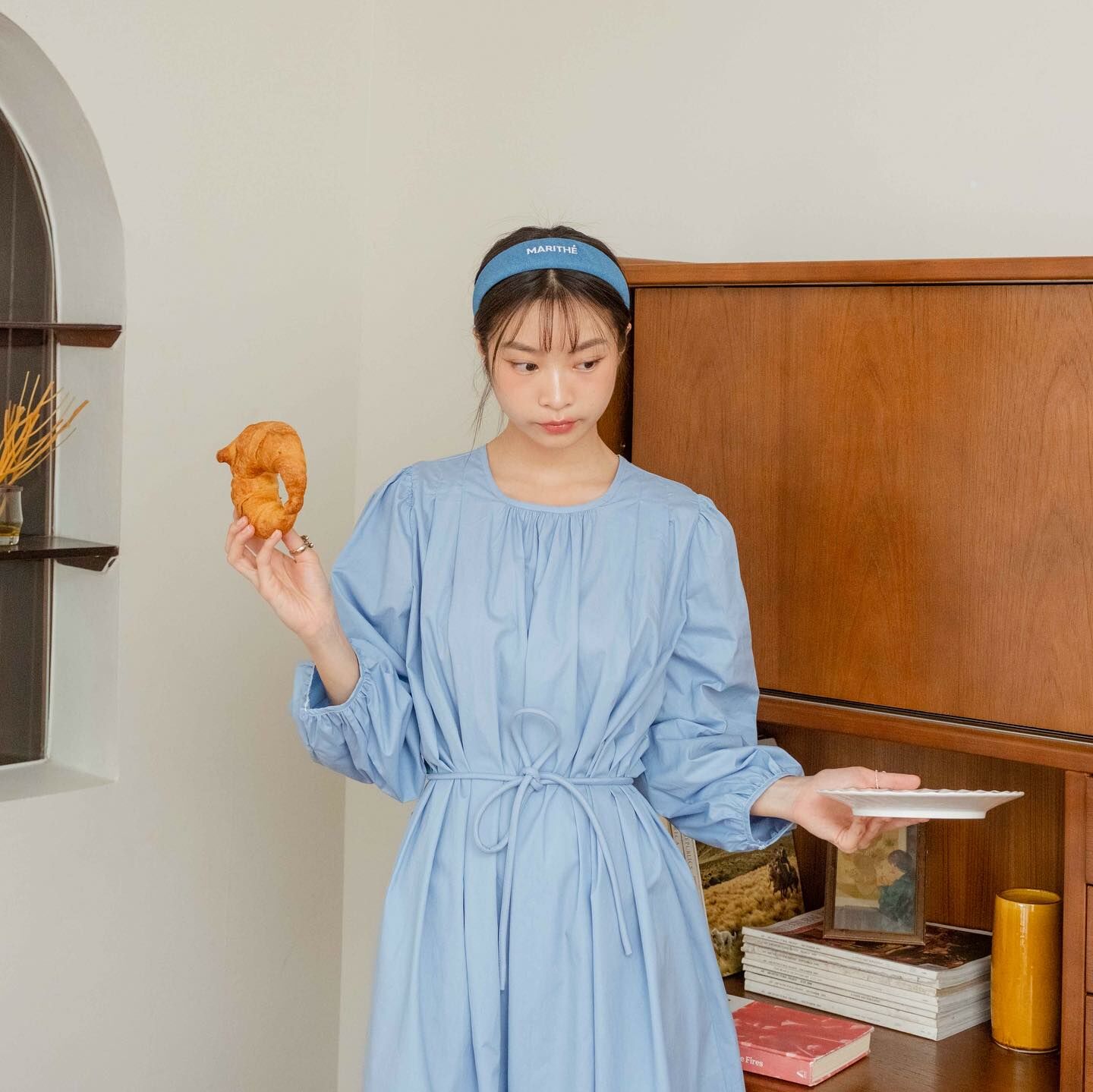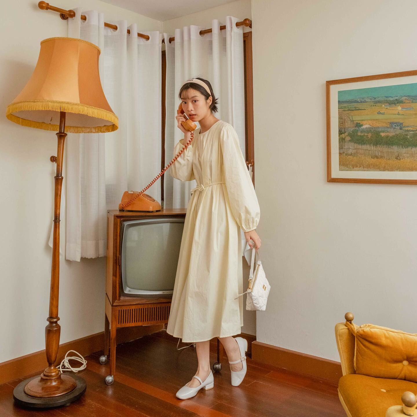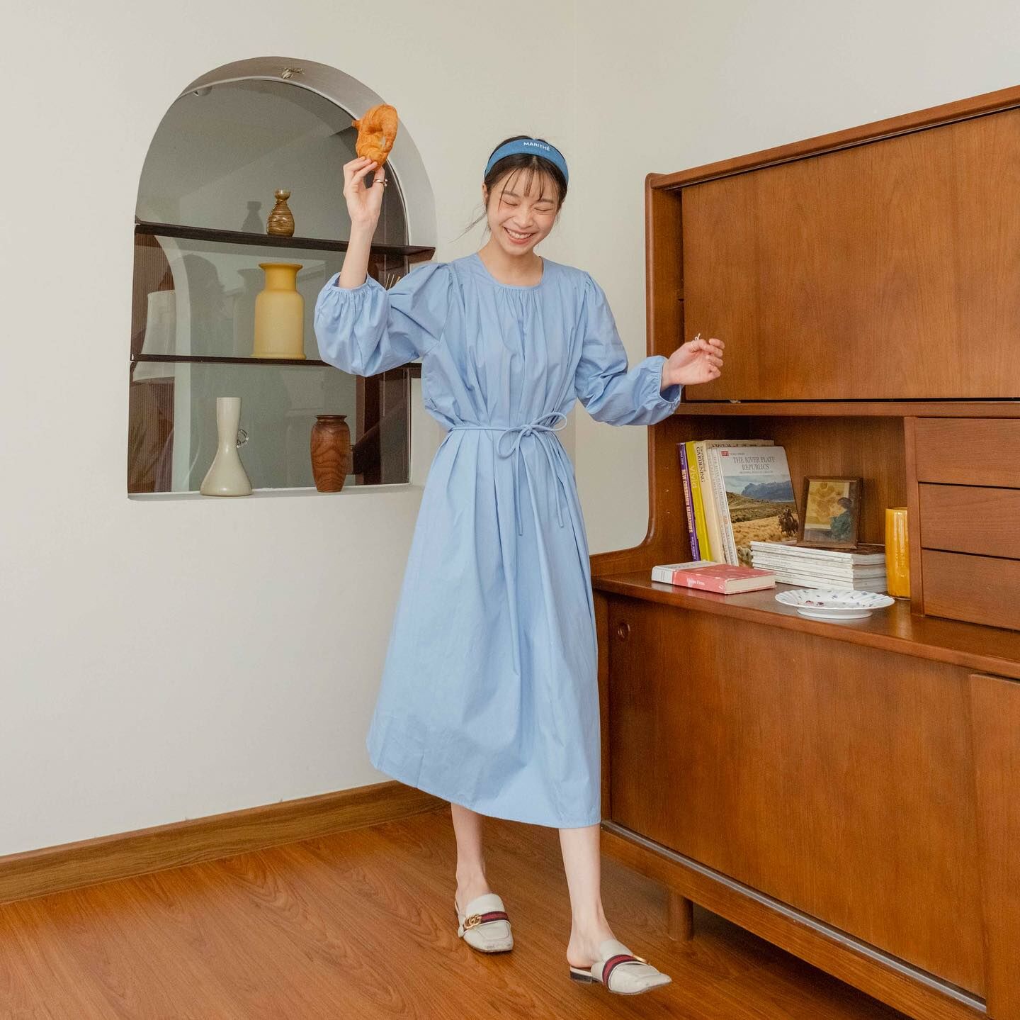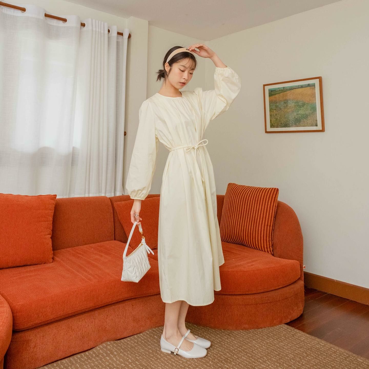 優質棉質連身裙,長袖,寬鬆版型,配有單獨的拉繩,可將其綁起來。