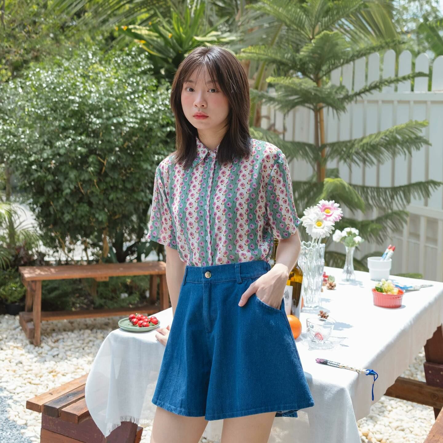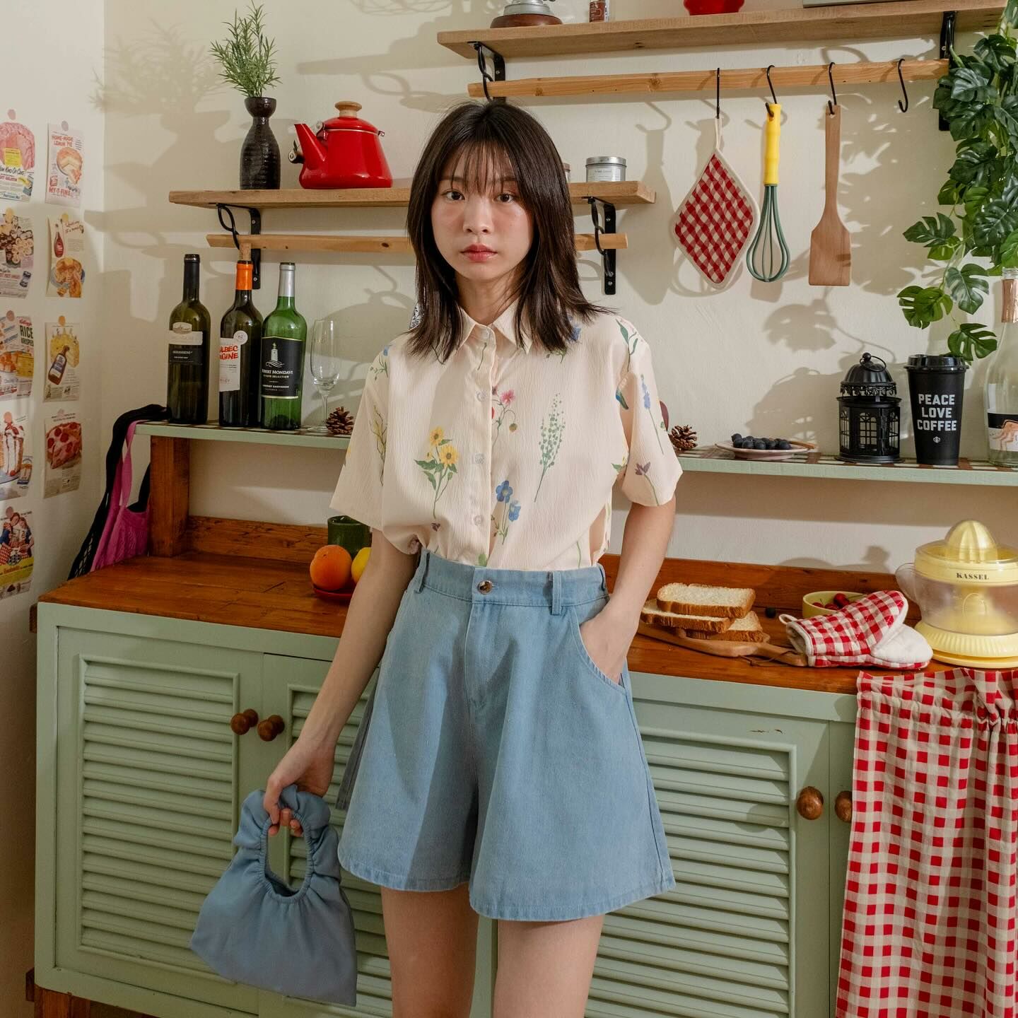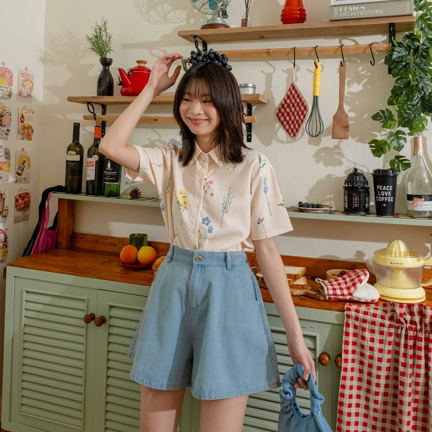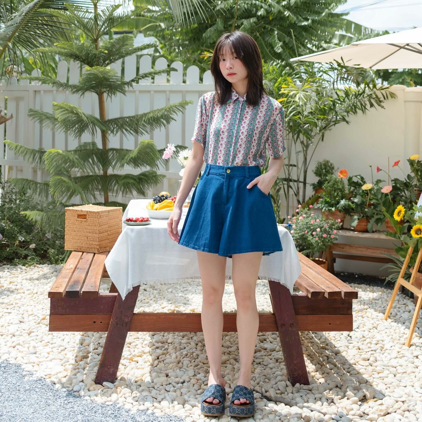 牛仔短褲會開得非常好。腰部為後款色板,前拉鍊前扣,側袋。您可以正常清洗。顏色不會脫落。