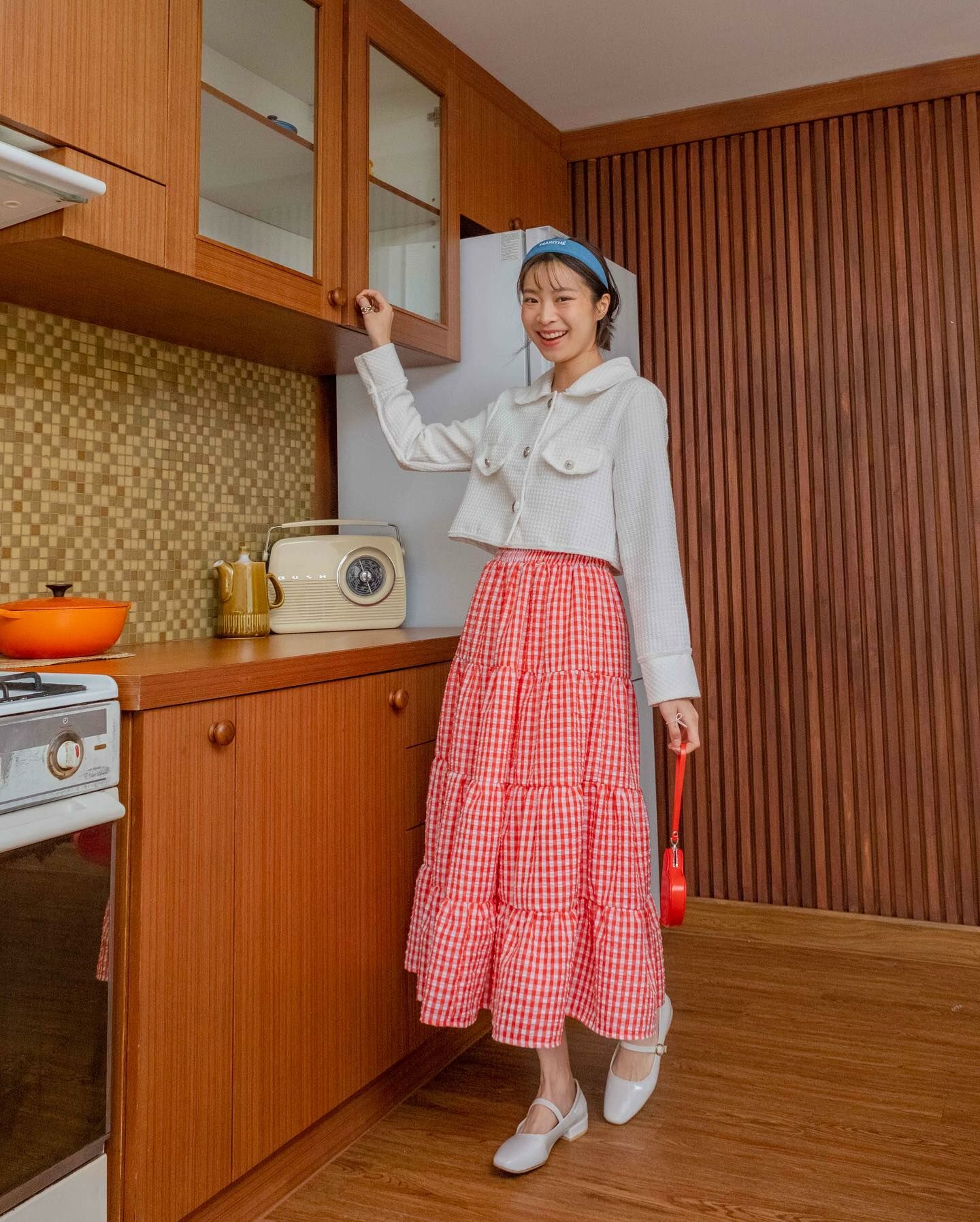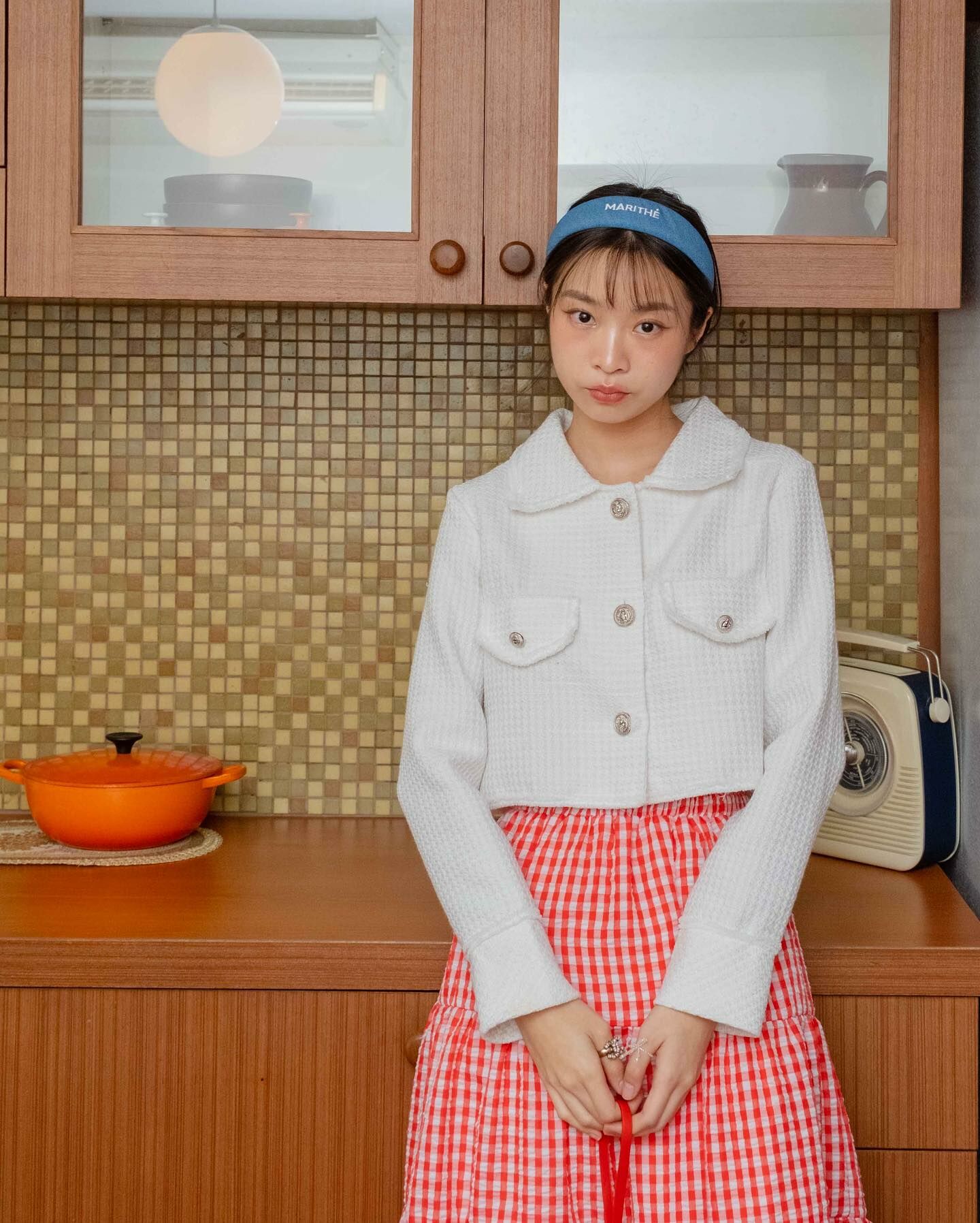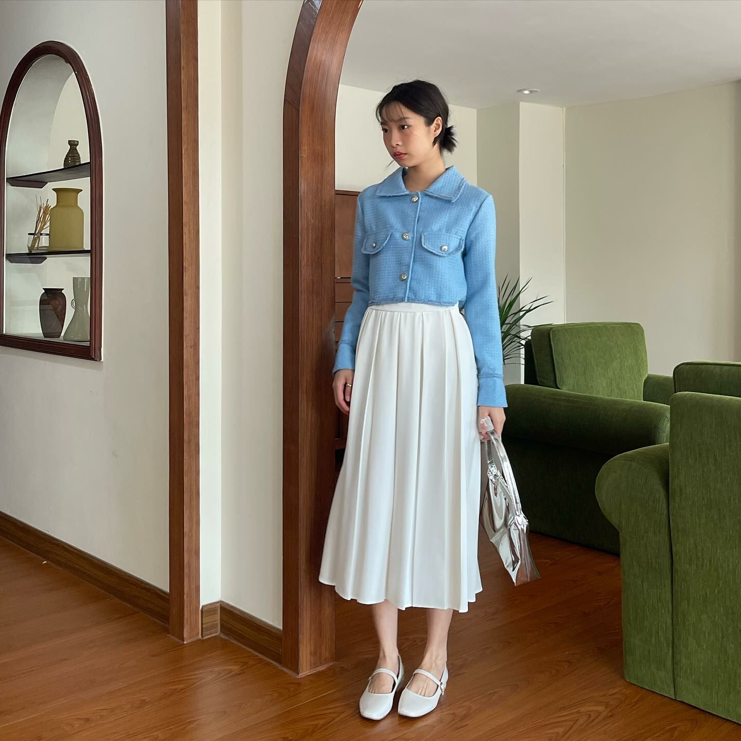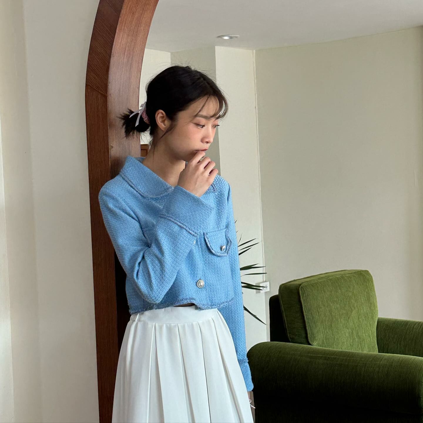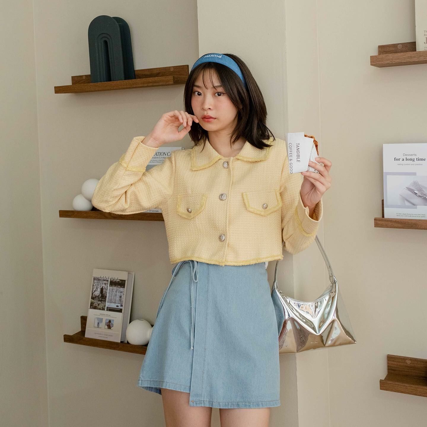 長袖粗呢襯衫穿上時,無論扣上釦子還是解開釦子,都很可愛。