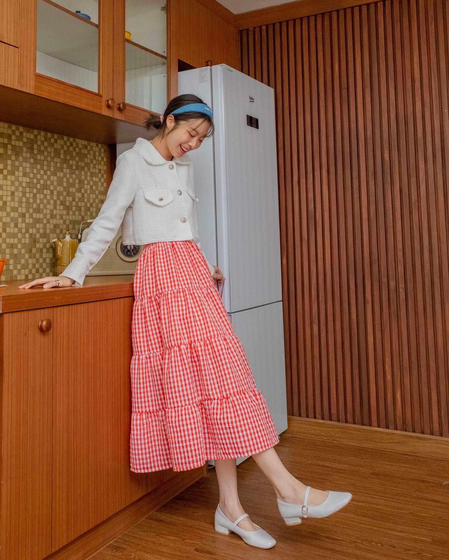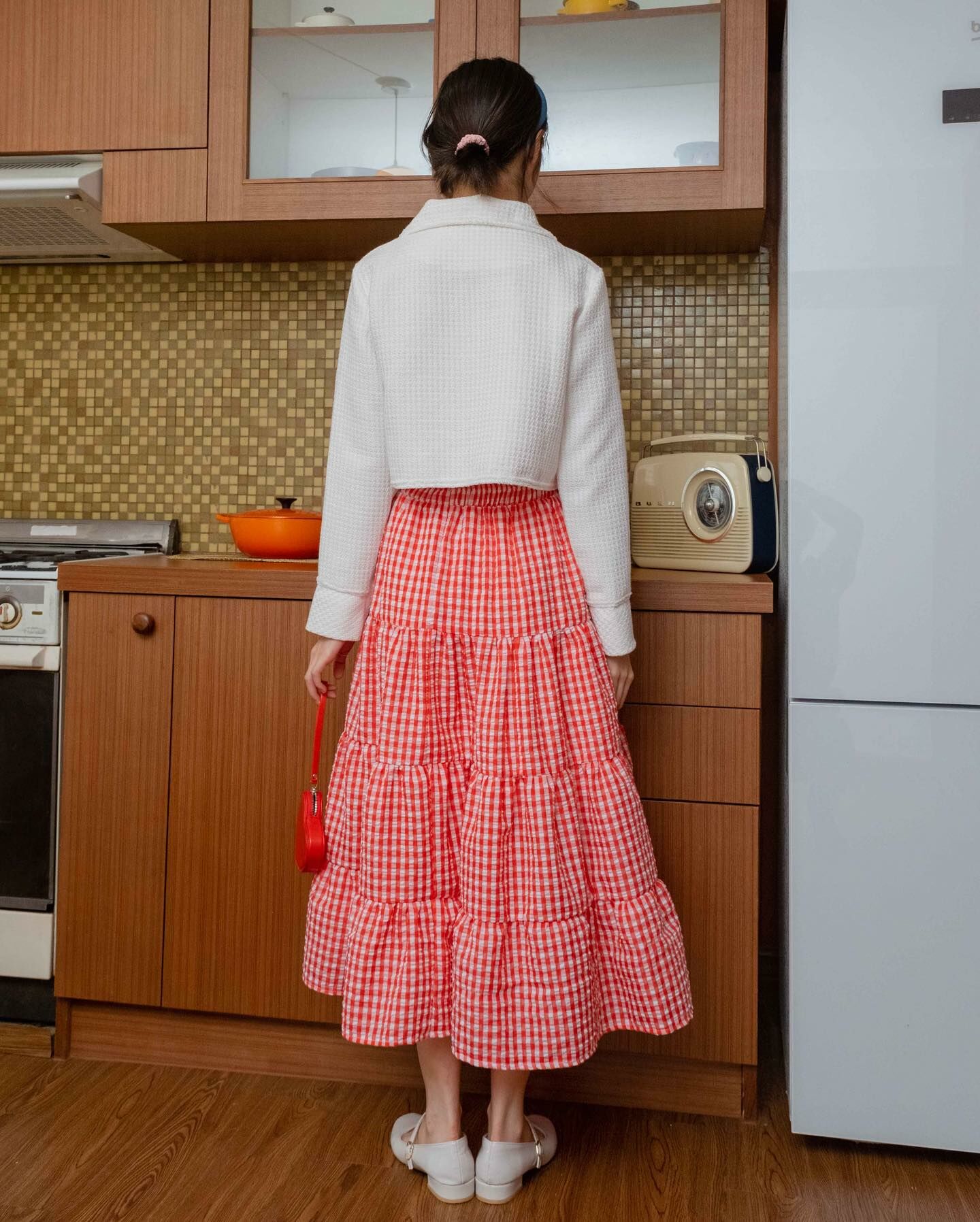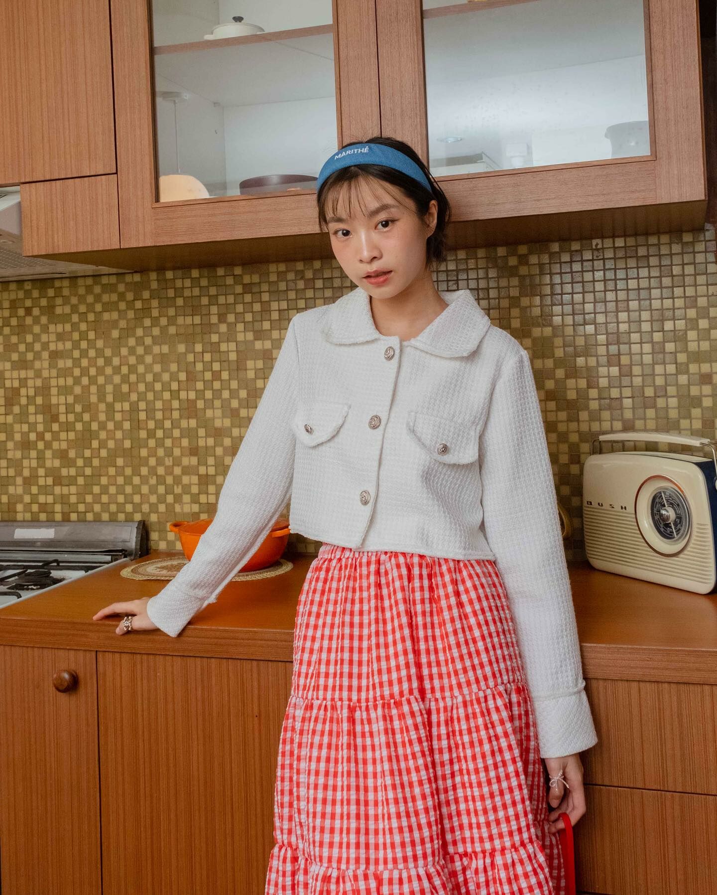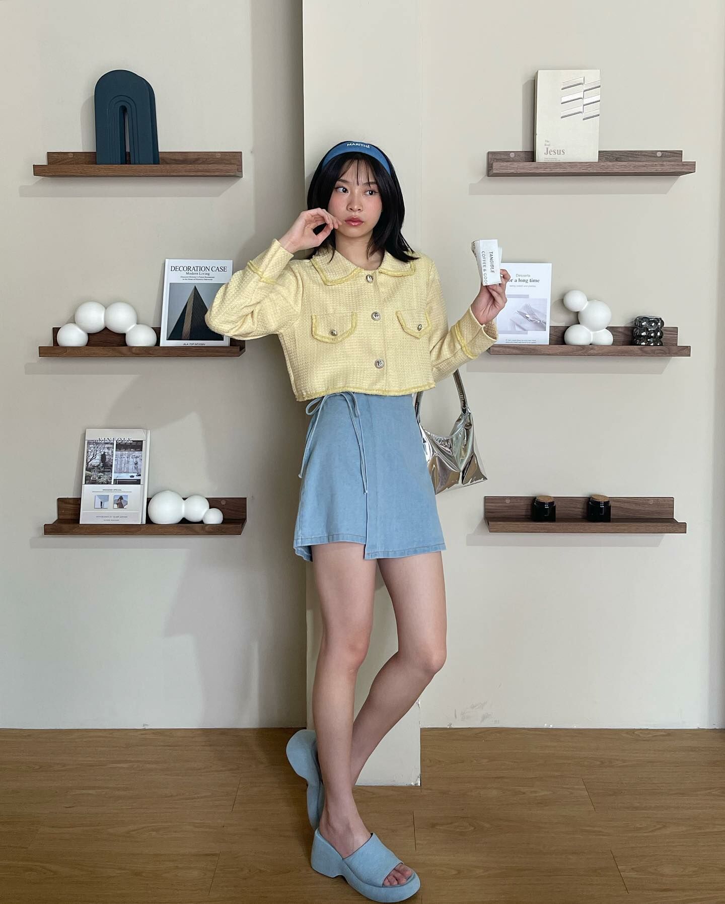 長袖粗呢襯衫穿上時,無論扣上釦子還是解開釦子,都很可愛。