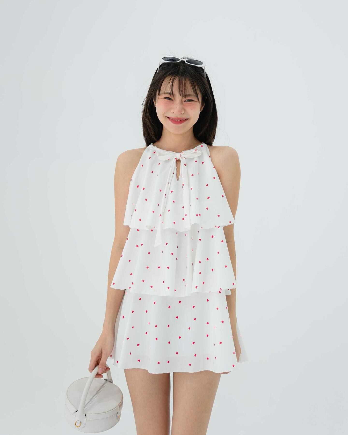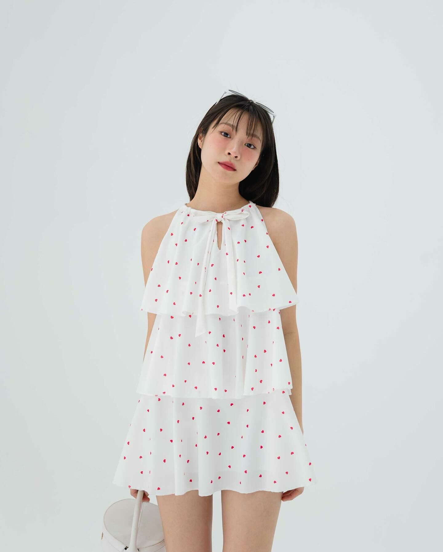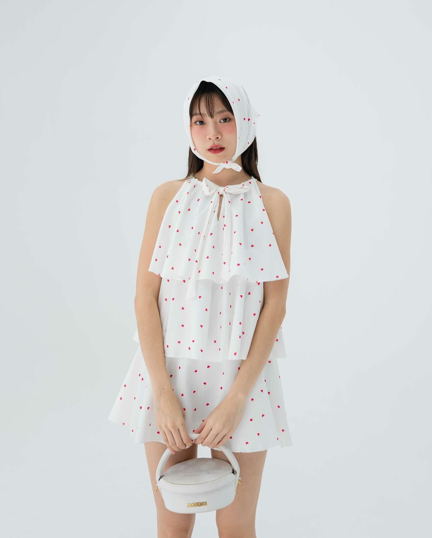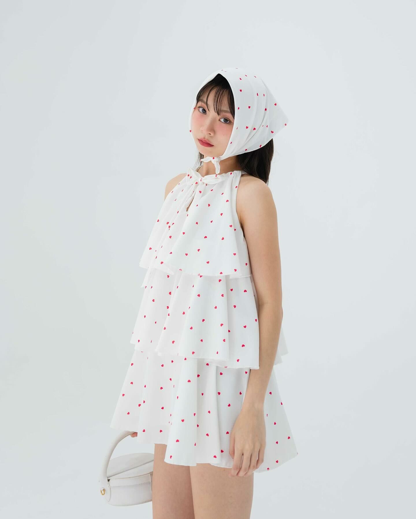 無袖連身裙,手拿包布料,心形圖案,在後面打成蝴蝶結或你的臉型也可以。