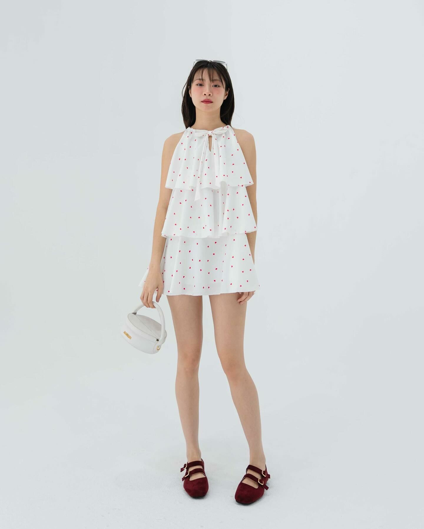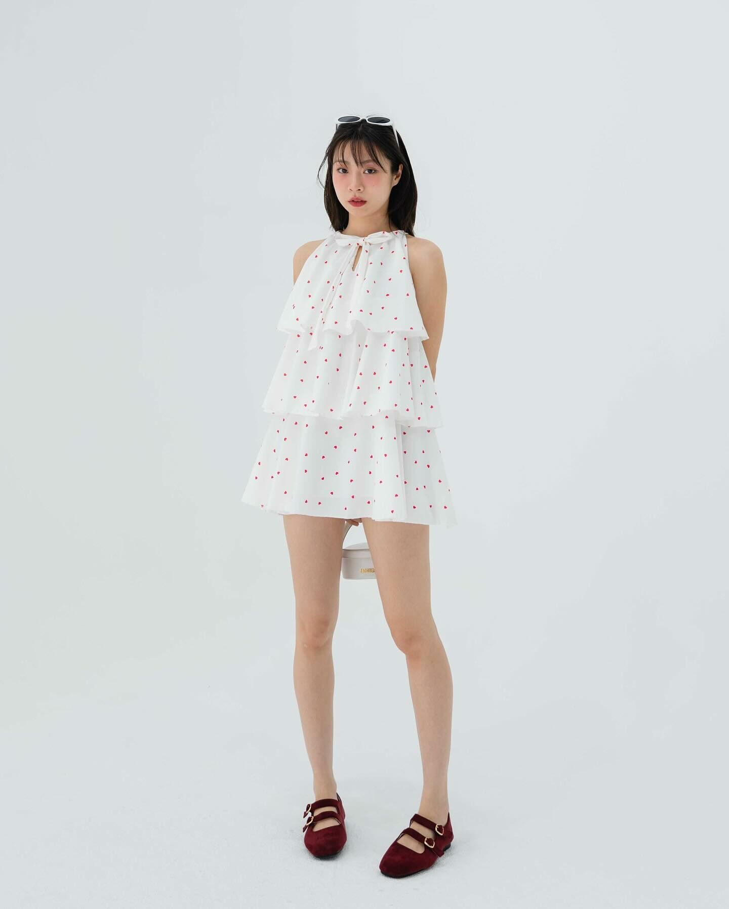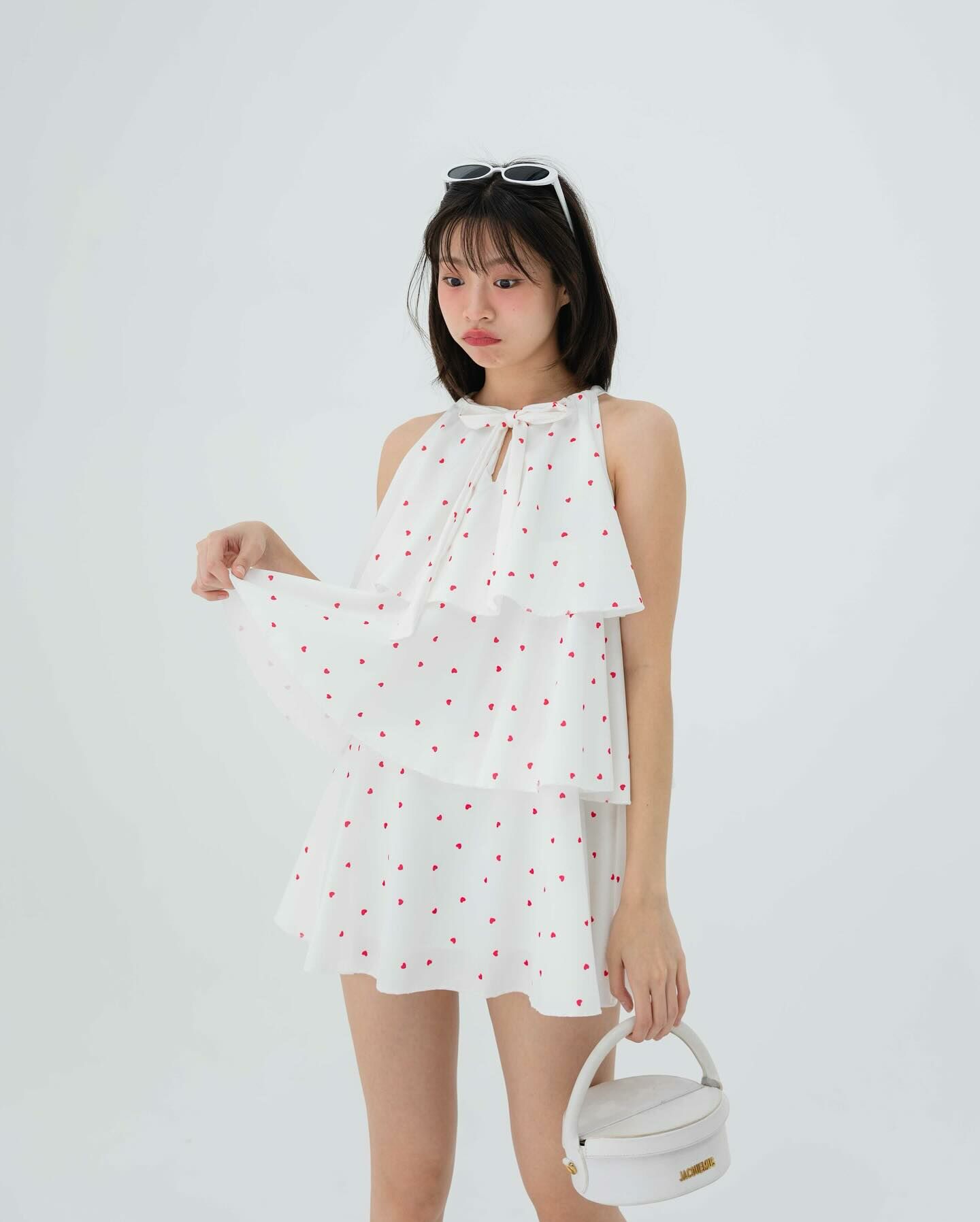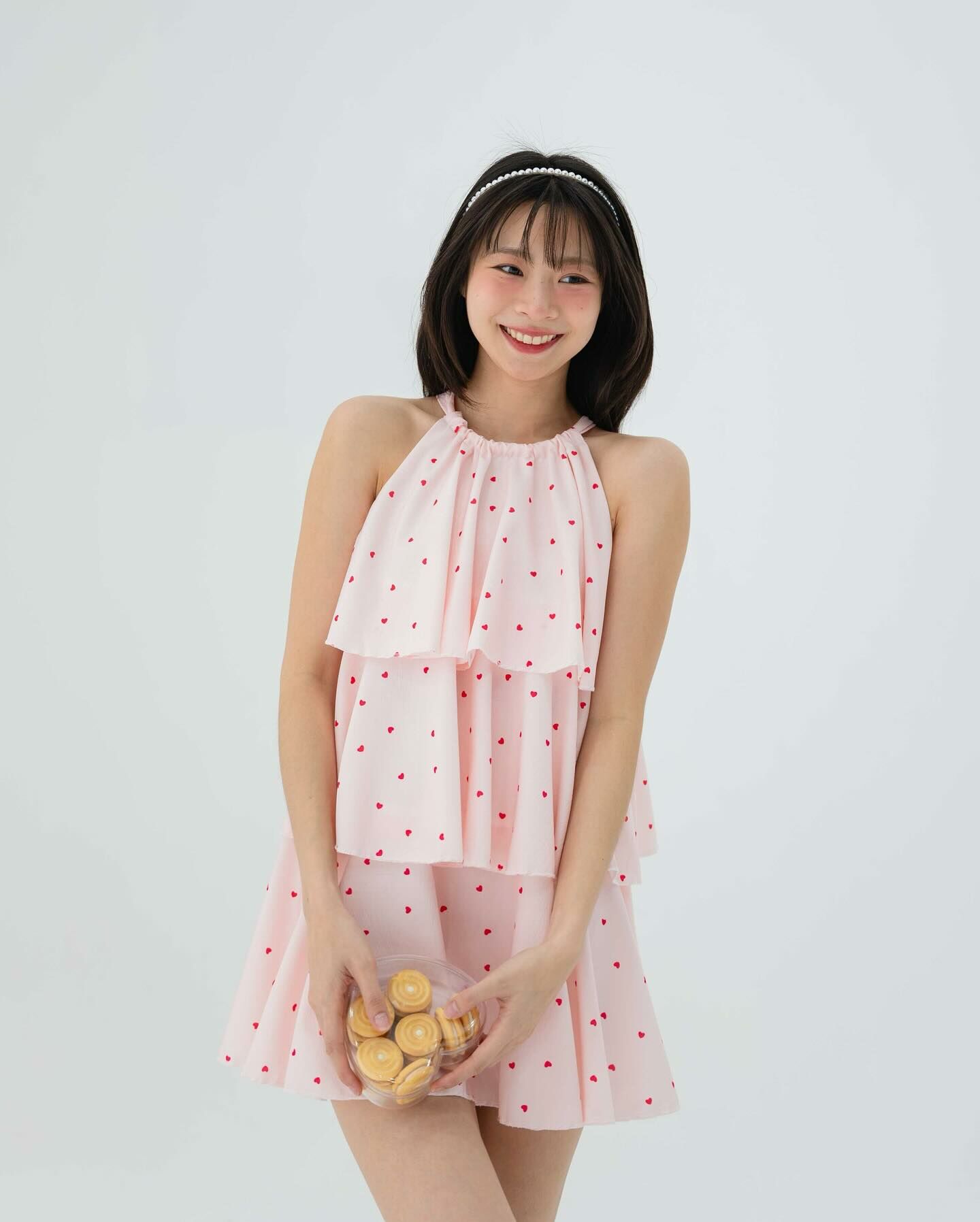 無袖連身裙,手拿包布料,心形圖案,在後面打成蝴蝶結或你的臉型也可以。