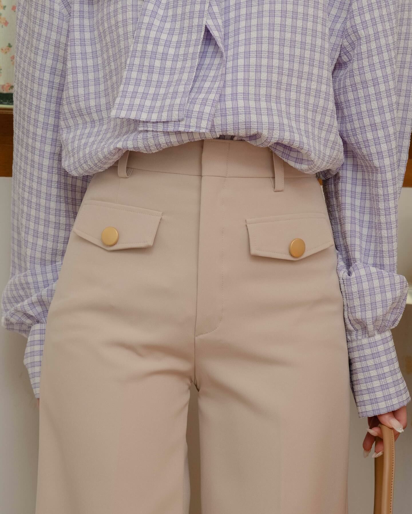 褲子與 #kmmfredpants 前袋細節相同,高腰,造型美觀。