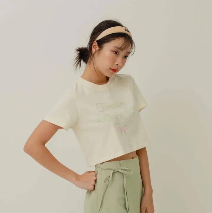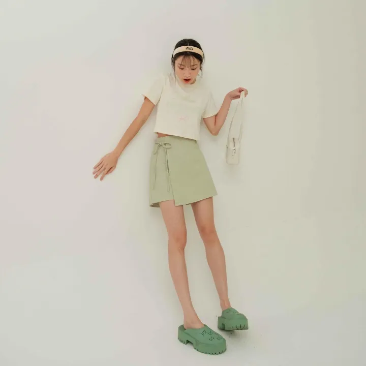 露臍上衣手提布質地好可愛印花搭配糖果蝴蝶結裙