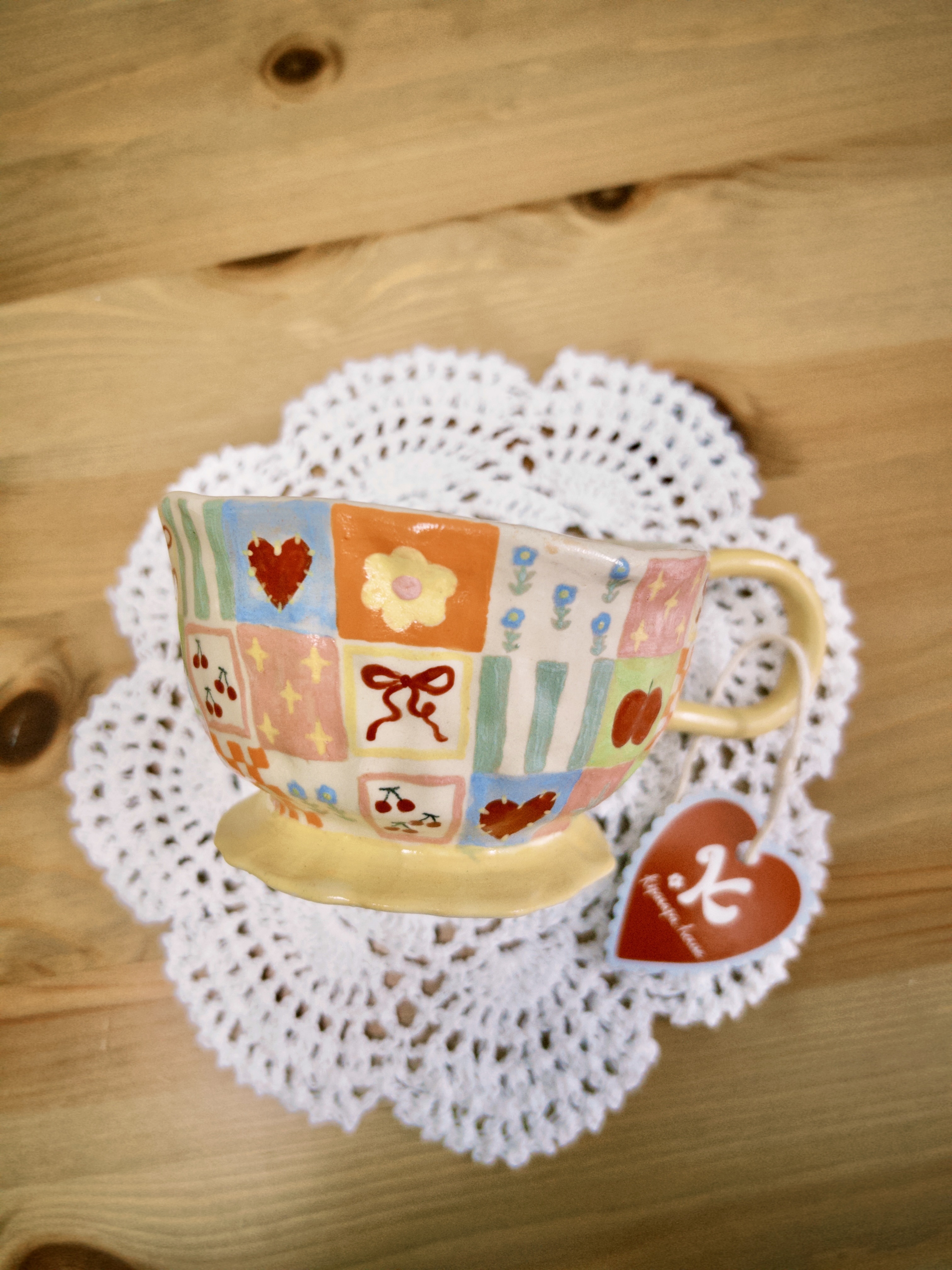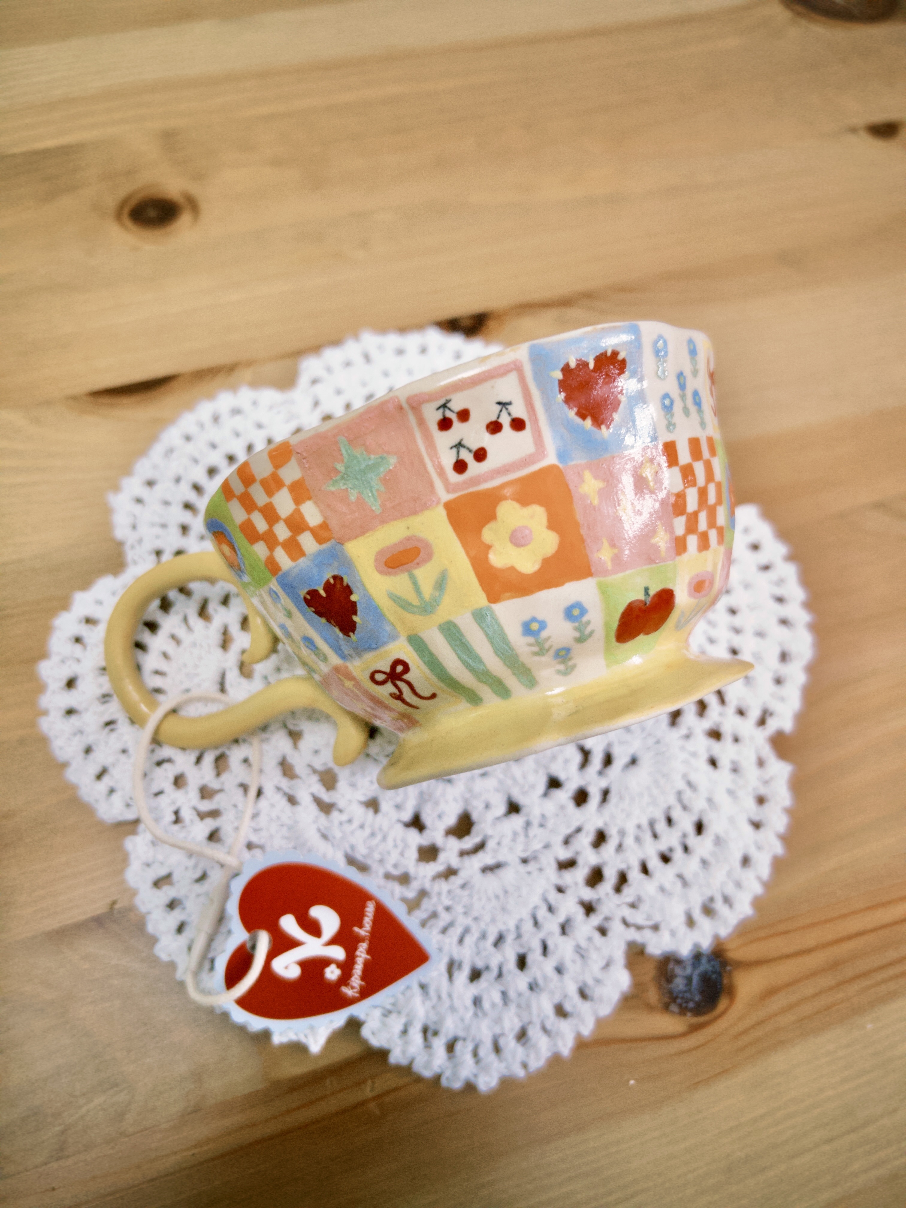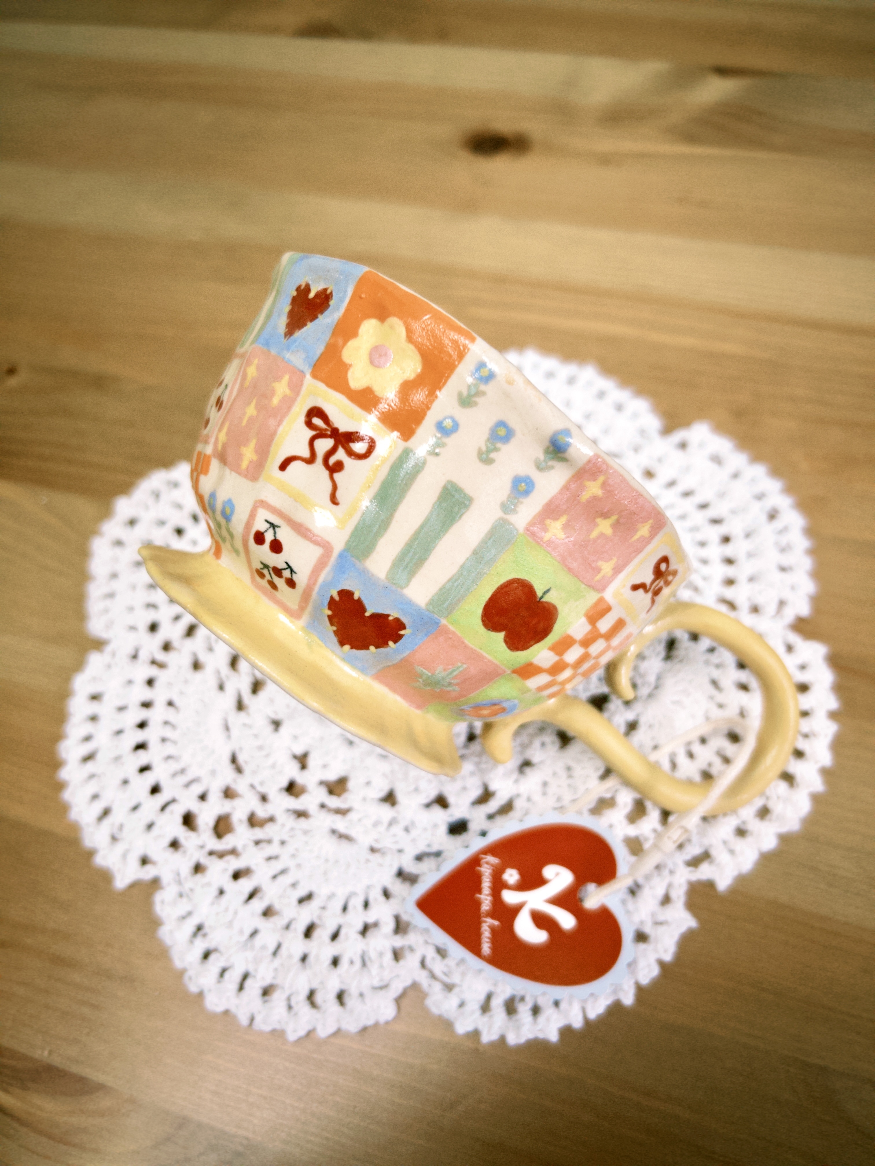以精緻的蘋果與花卉圖案設計,為您的飲品時光增添一份自然與優雅。手工製作,質感細膩,適合家居或辦公室使用。讓您在品茶或咖啡時,享受溫馨與美好的氛圍。