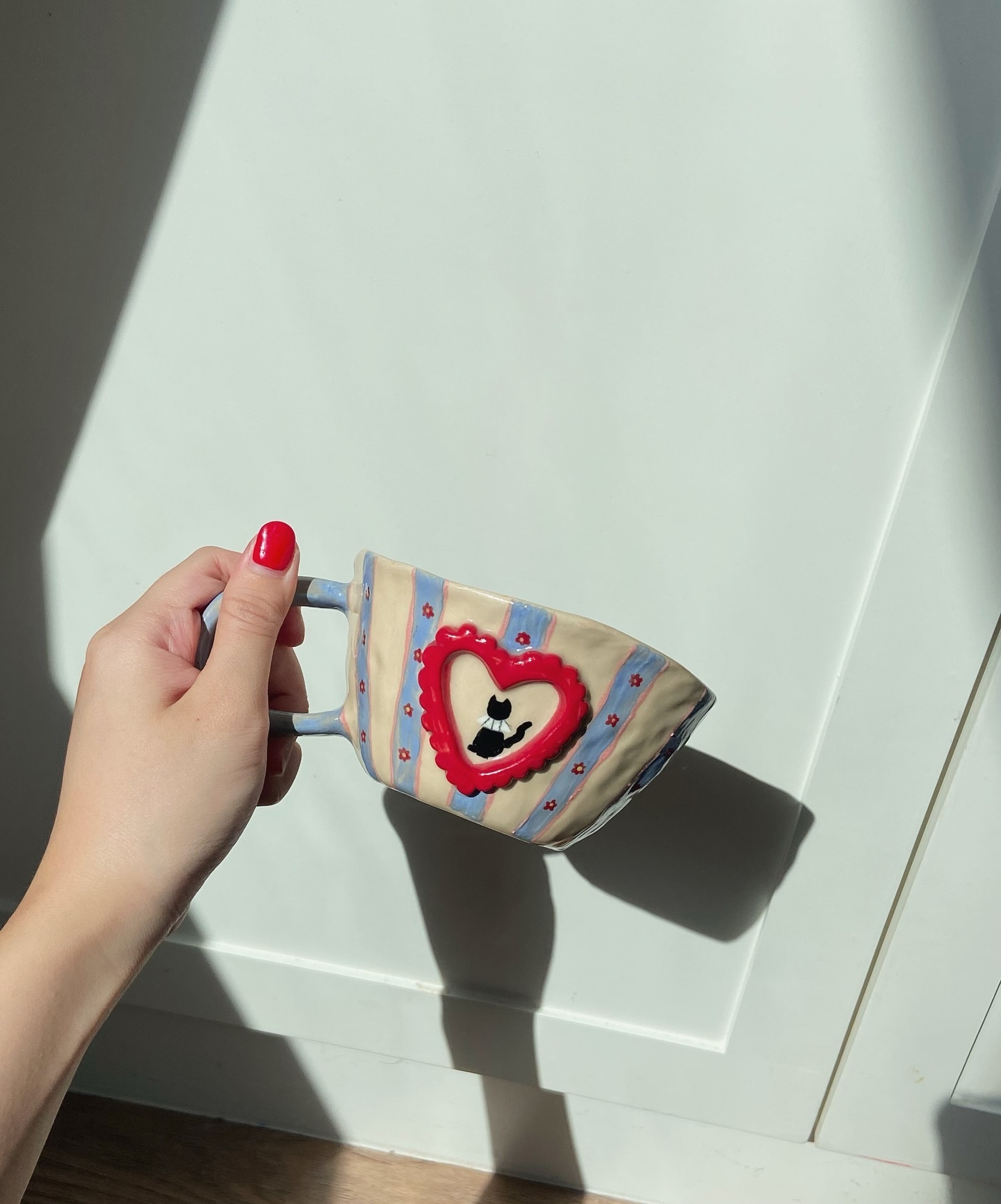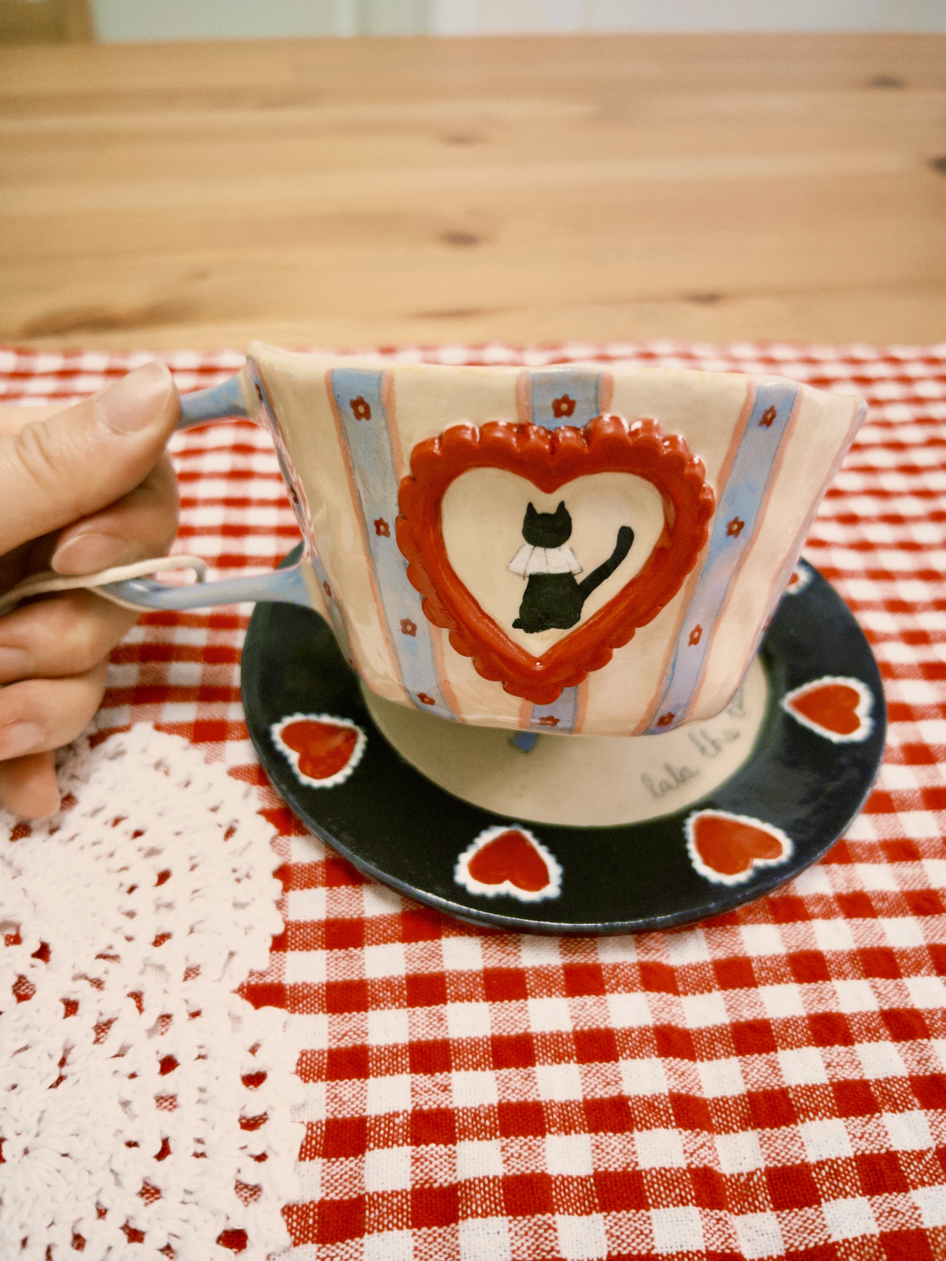 結合可愛黑貓與優雅花紋設計,為您的日常飲品增添一份獨特魅力。手工製作,質感細膩,適合家居或辦公室使用。讓您在品茶或咖啡時,享受溫馨與時尚的完美結合。