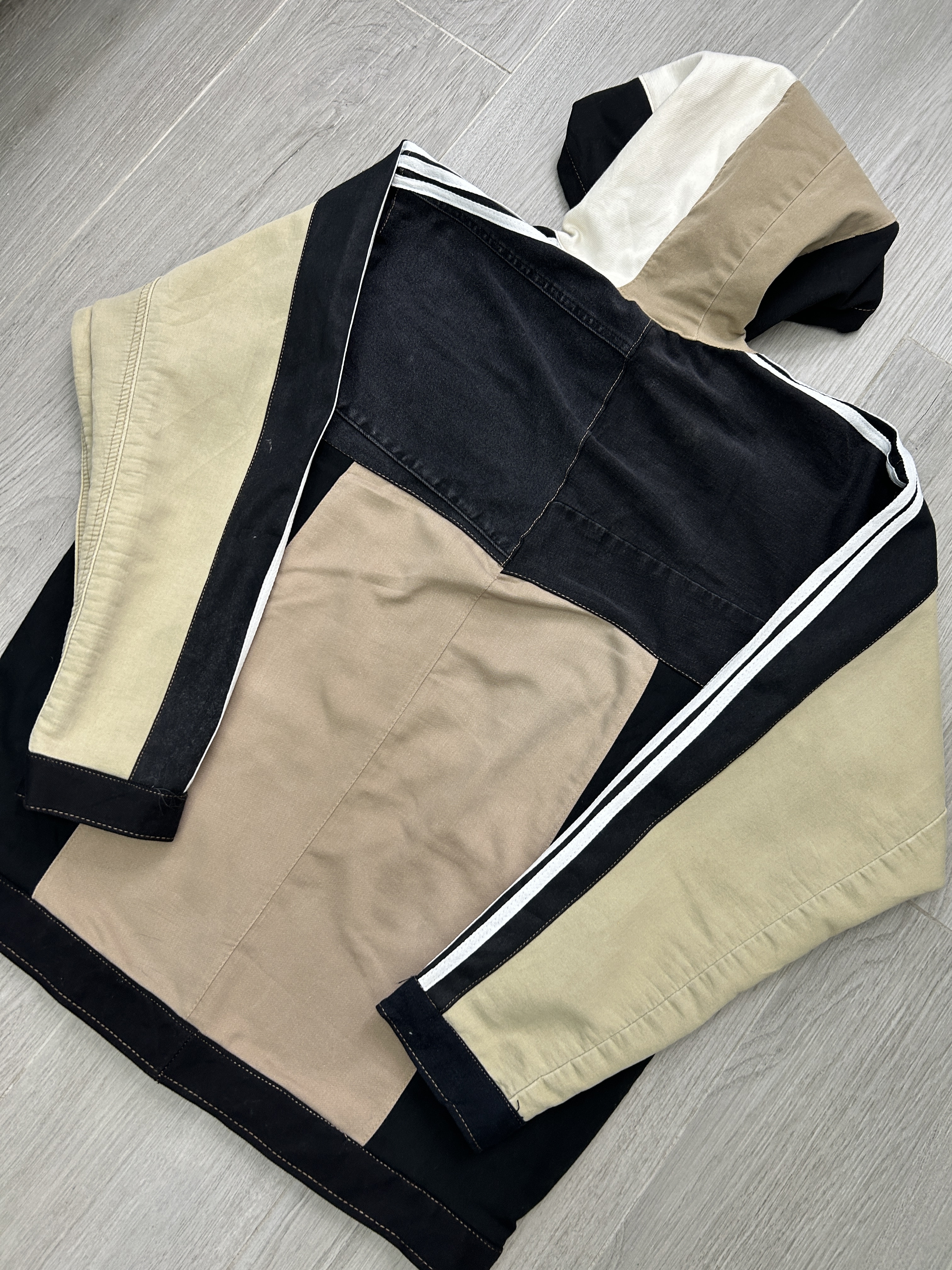 黑併杏連帽:胸圍45" 腰圍45" 衣長27" 袖長24" 帽高14"