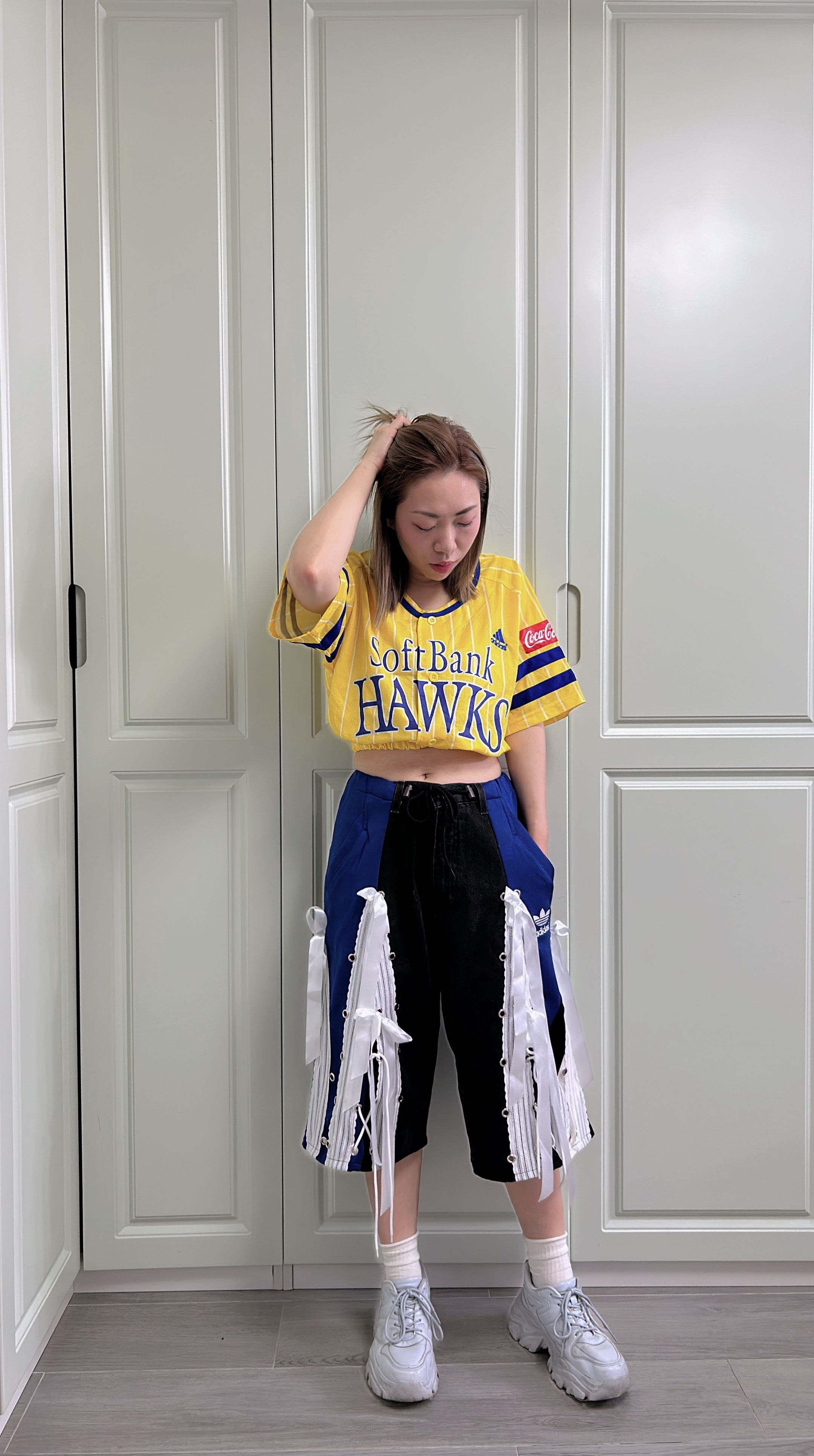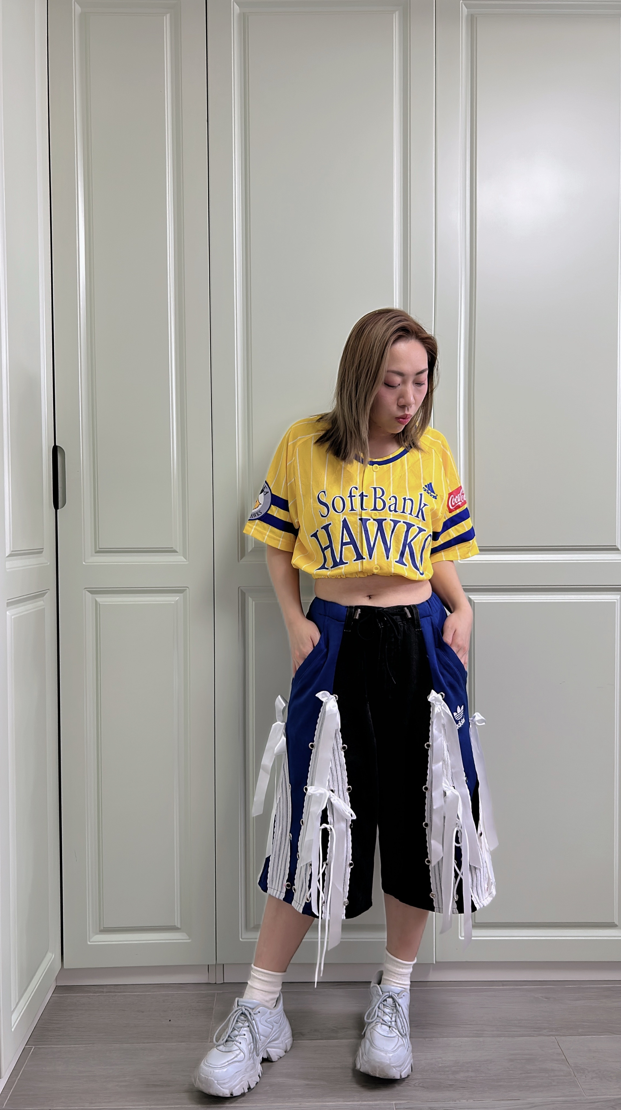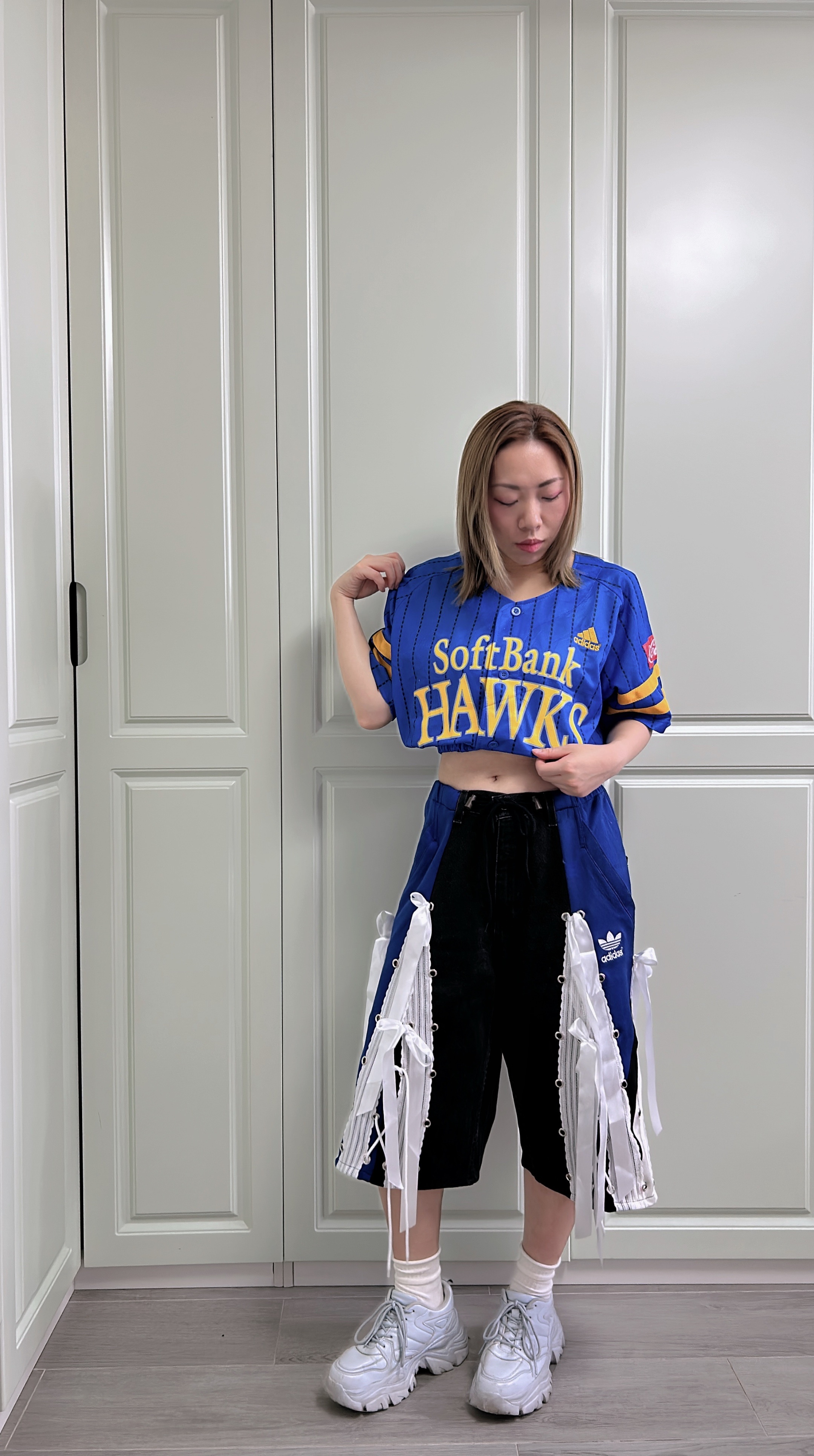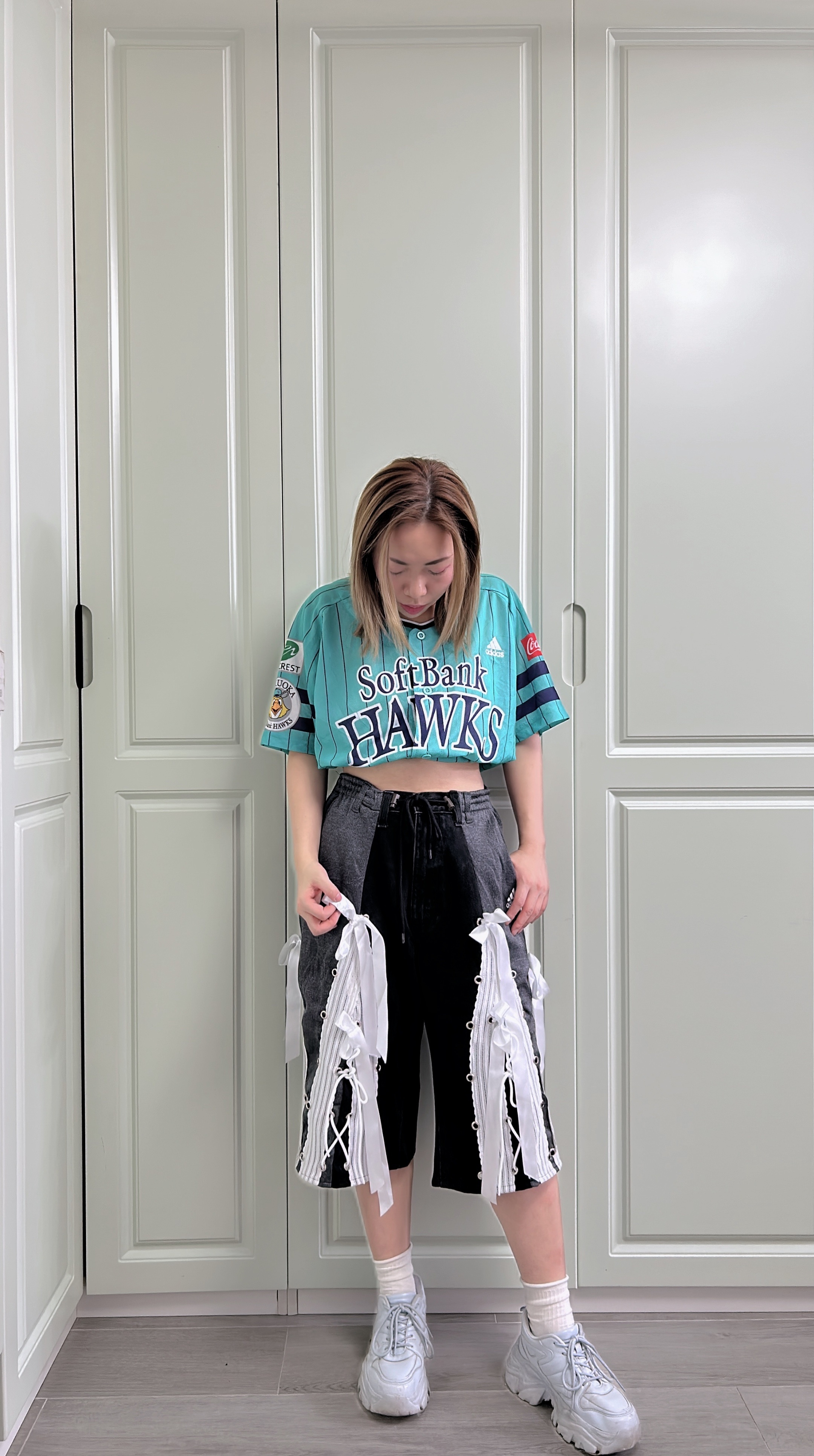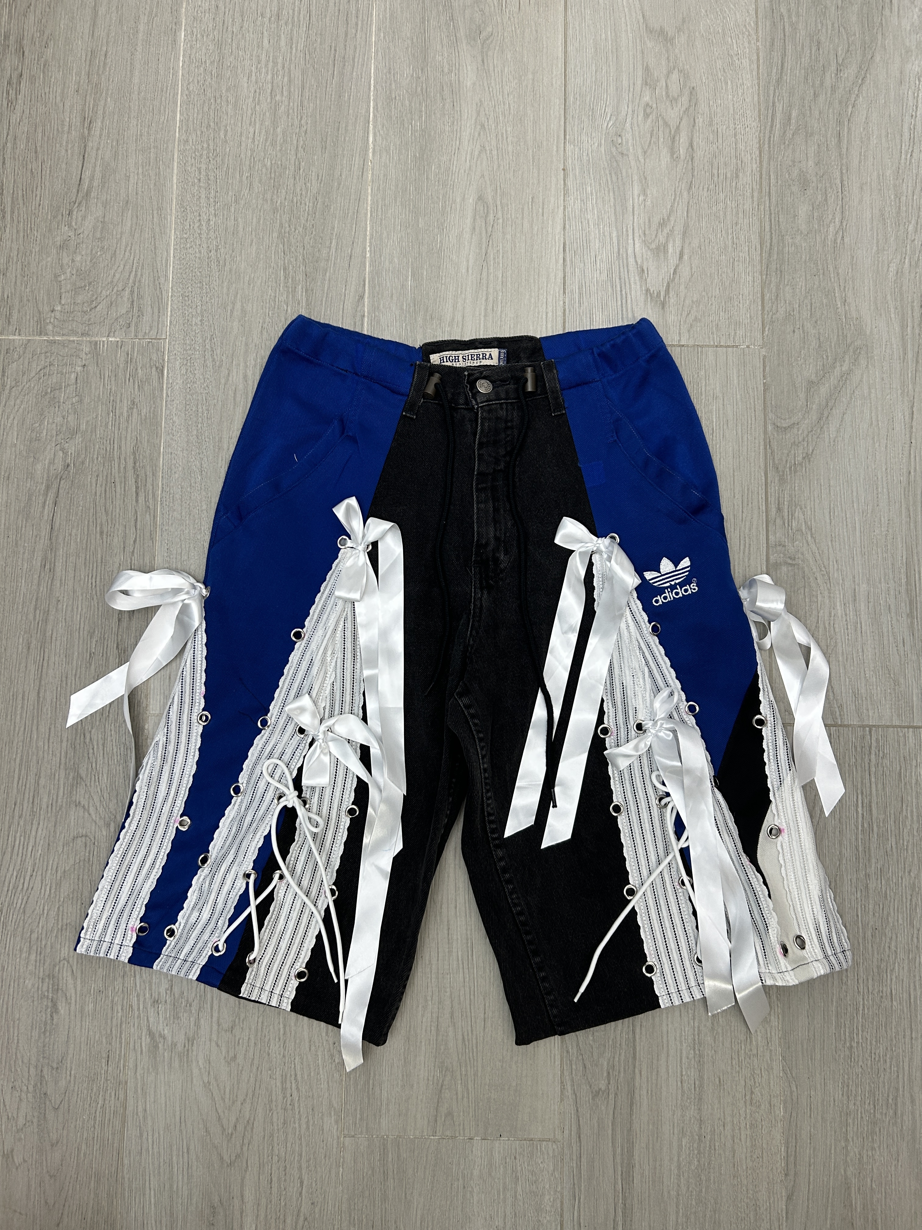 牛仔藍配黑白🖤🤍 腰圍F-38" 臀圍 F-45" 褲長25" 內褲長13" 褲檔12.5"