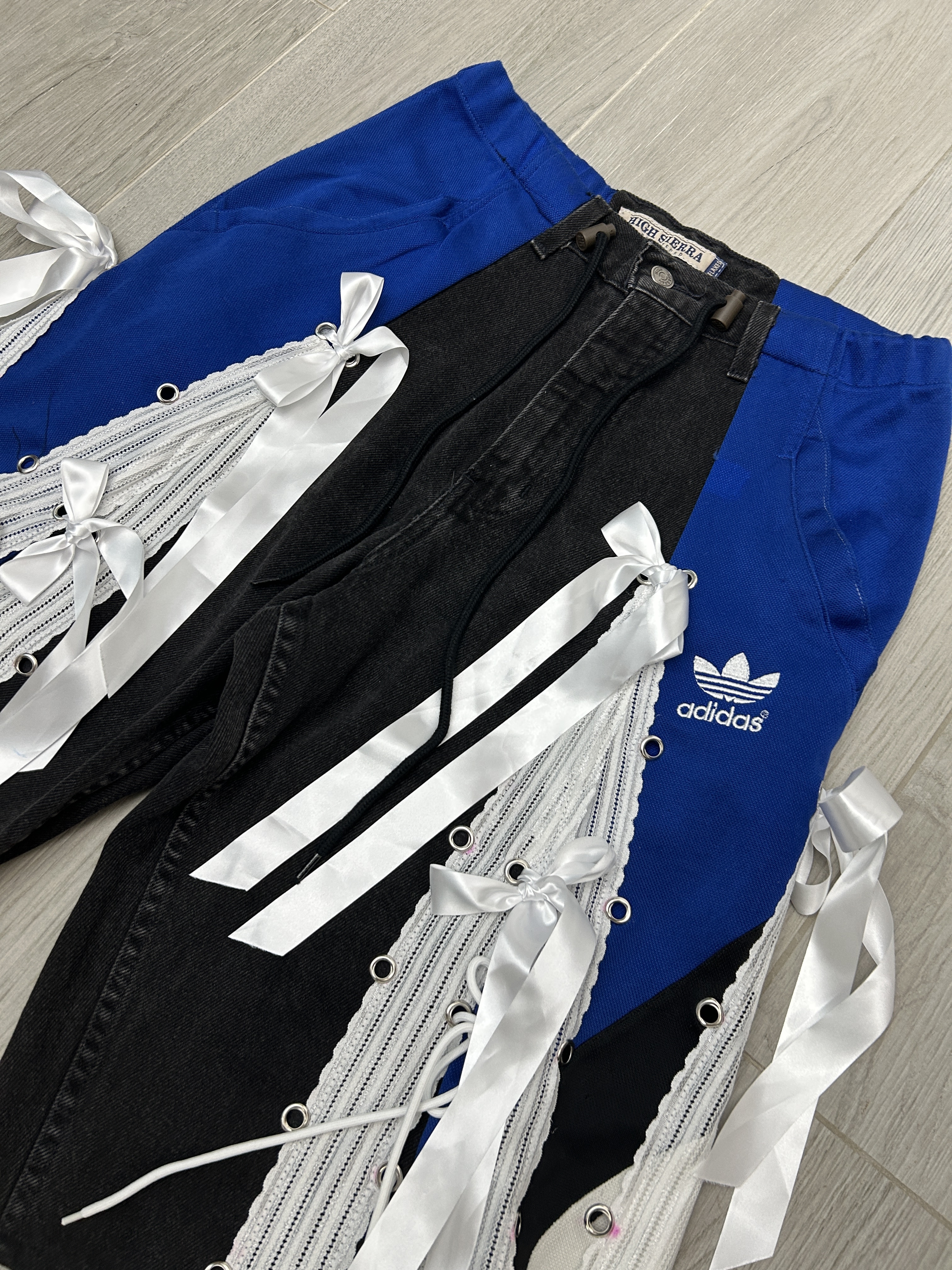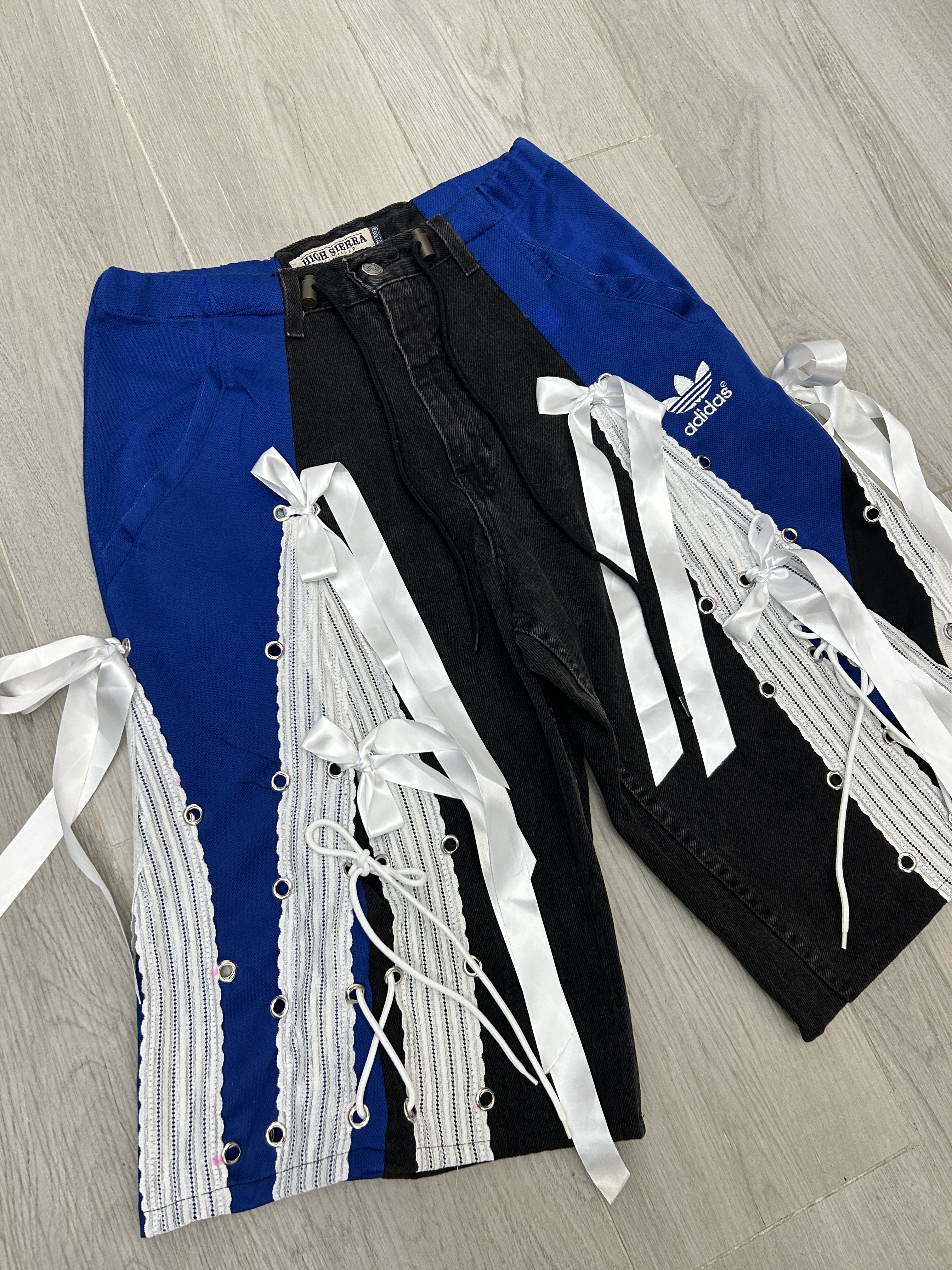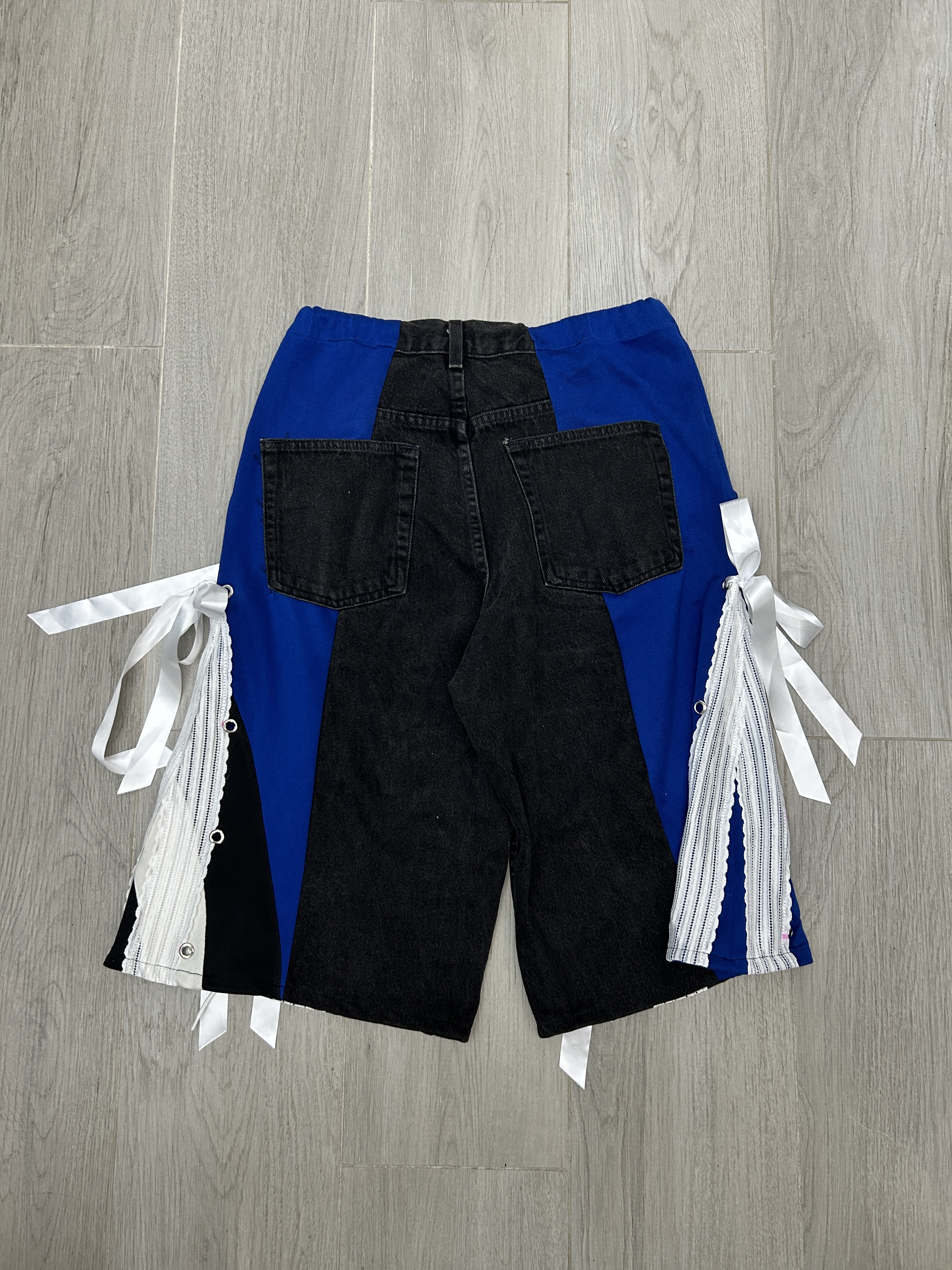 牛仔黑配寶藍💙 腰圍F-35" 臀圍 F-43" 褲長25.5" 內褲長14" 褲檔12.5"