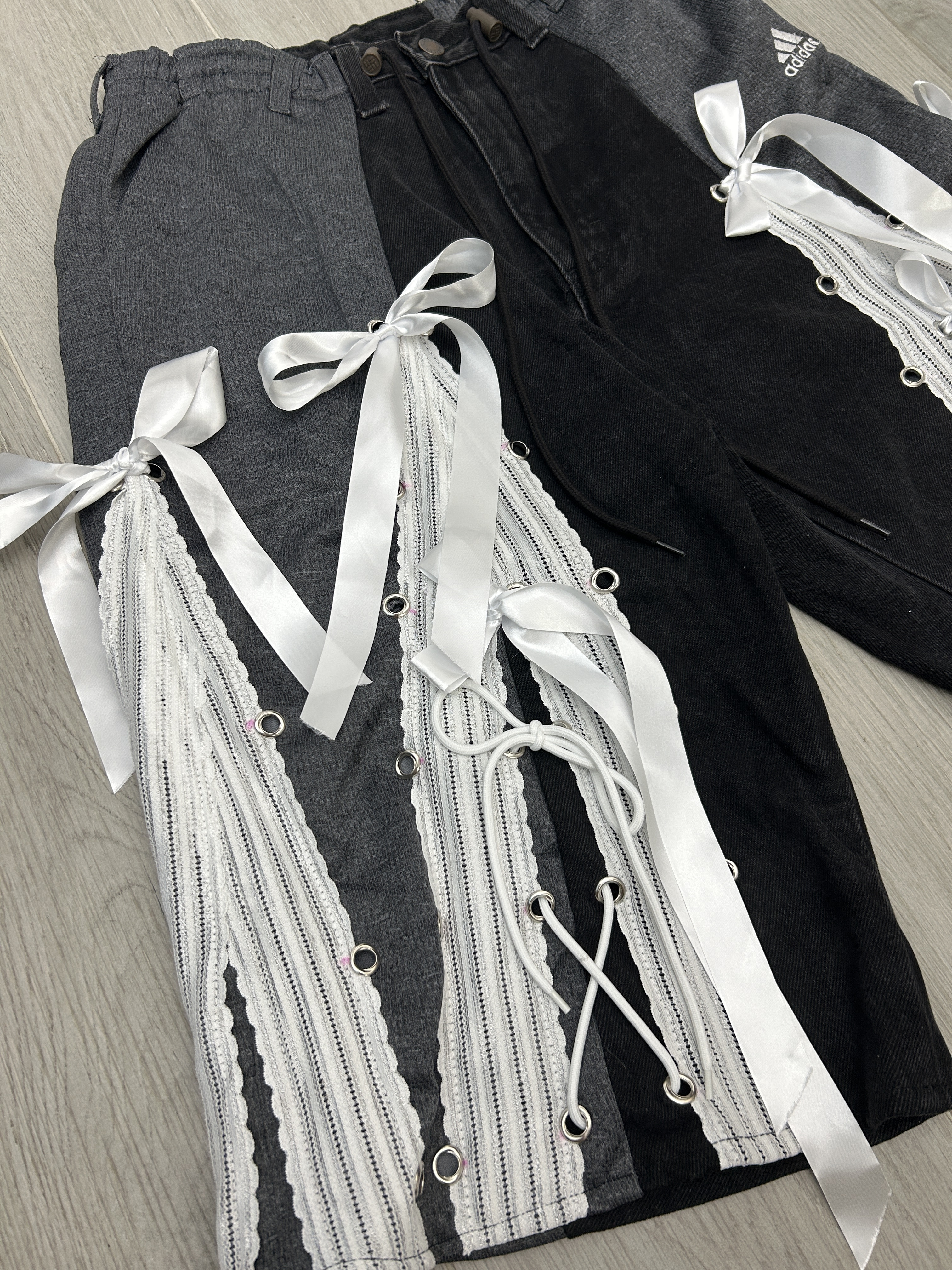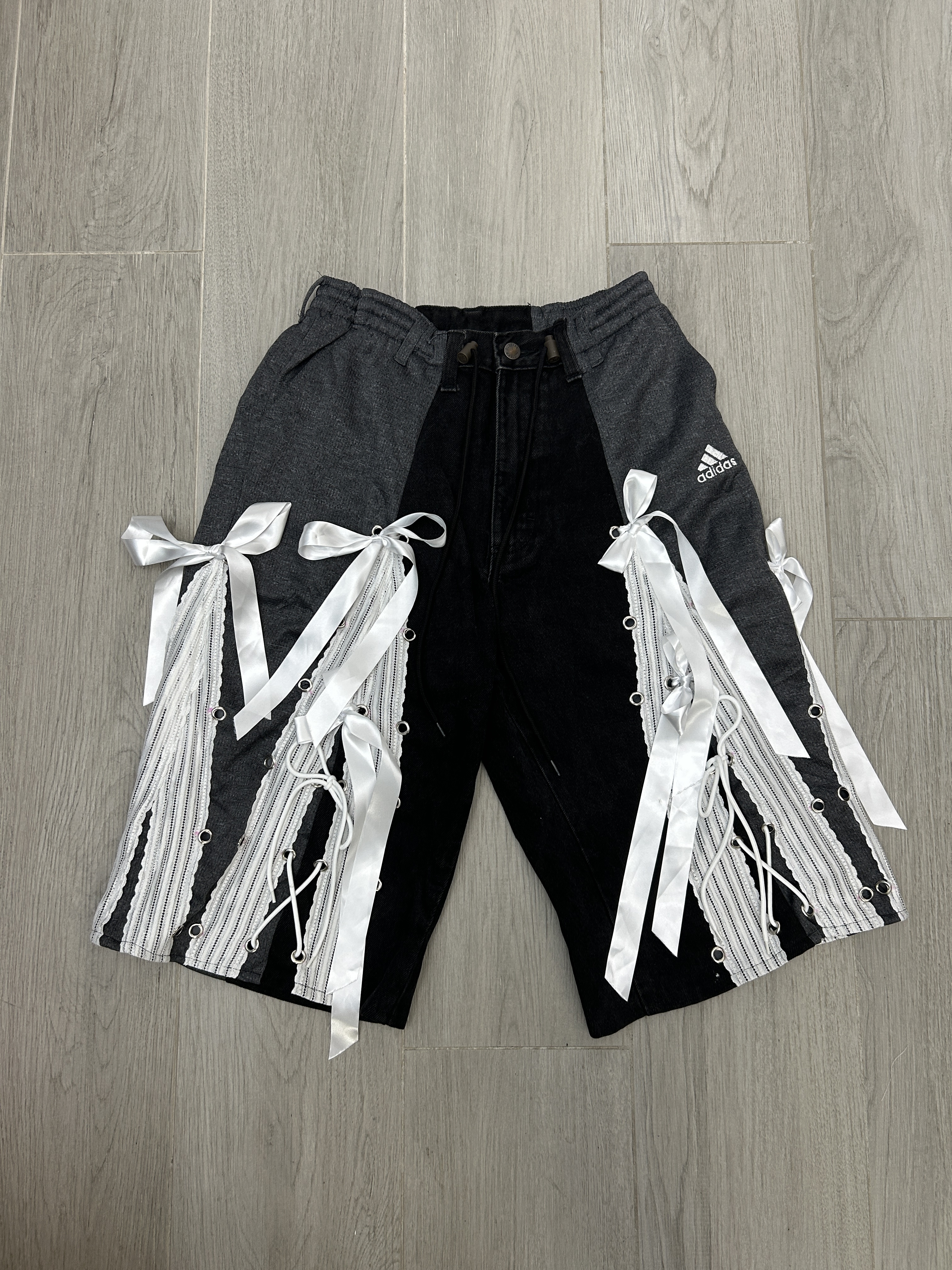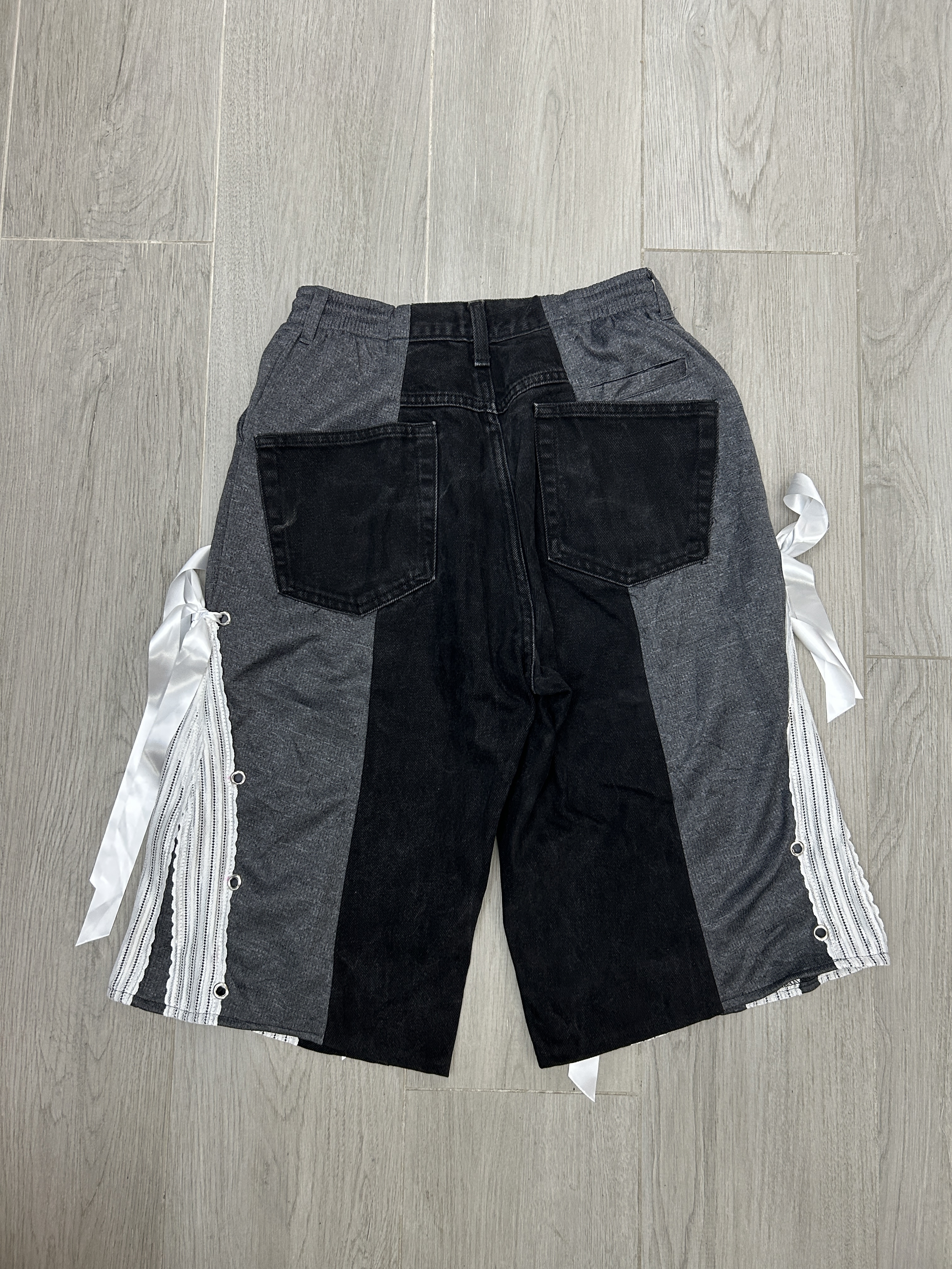牛仔黑配灰色🩶 腰圍F-34" 臀圍 F-45" 褲長26" 內褲長15" 褲檔13"
